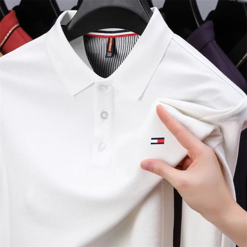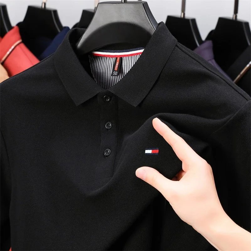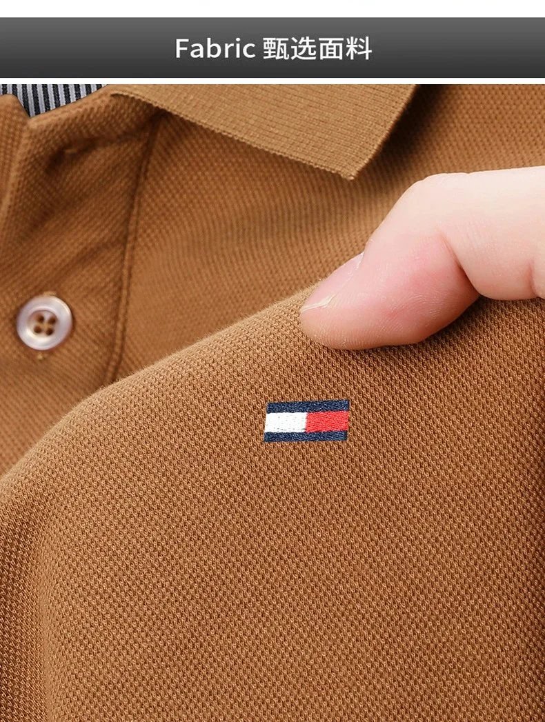 Classic Tommy Hilfiger red polo shirt featuring the iconic flag logo on the chest and a striped inner collar for a refined look.