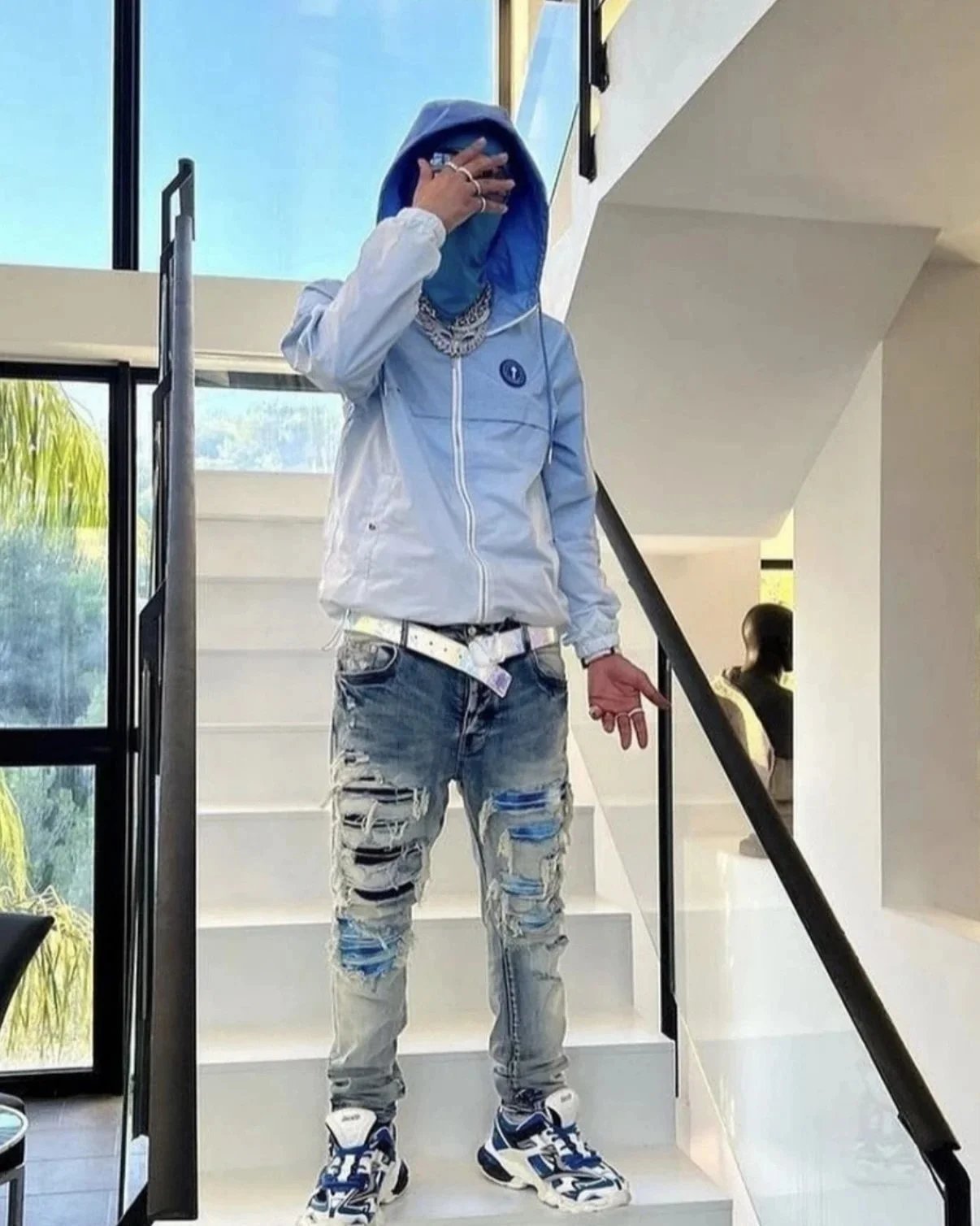 TRAPSTAR Eagle Print Light Blue Windbreaker Jacket