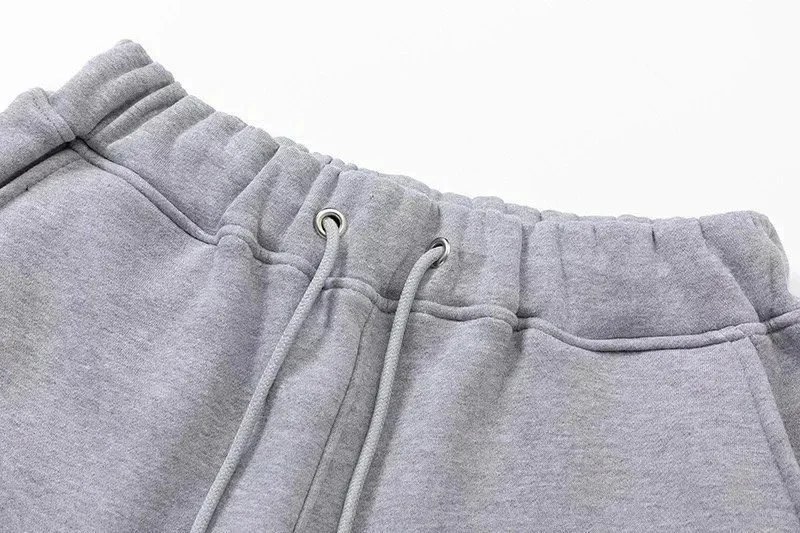 TRAPSTAR branded hoodie and matching jogger pants set in gray and black. Features bold logo graphics on chest and thigh for urban streetwear style. Ideal for casual wear or athleisure.