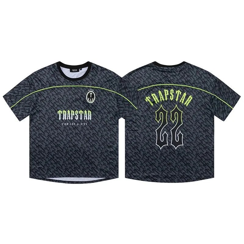 Discover the TRAPSTAR jersey collection featuring vibrant colorways and bold graphic designs with '22' numbering. Ideal for casual wear or sport-inspired style.