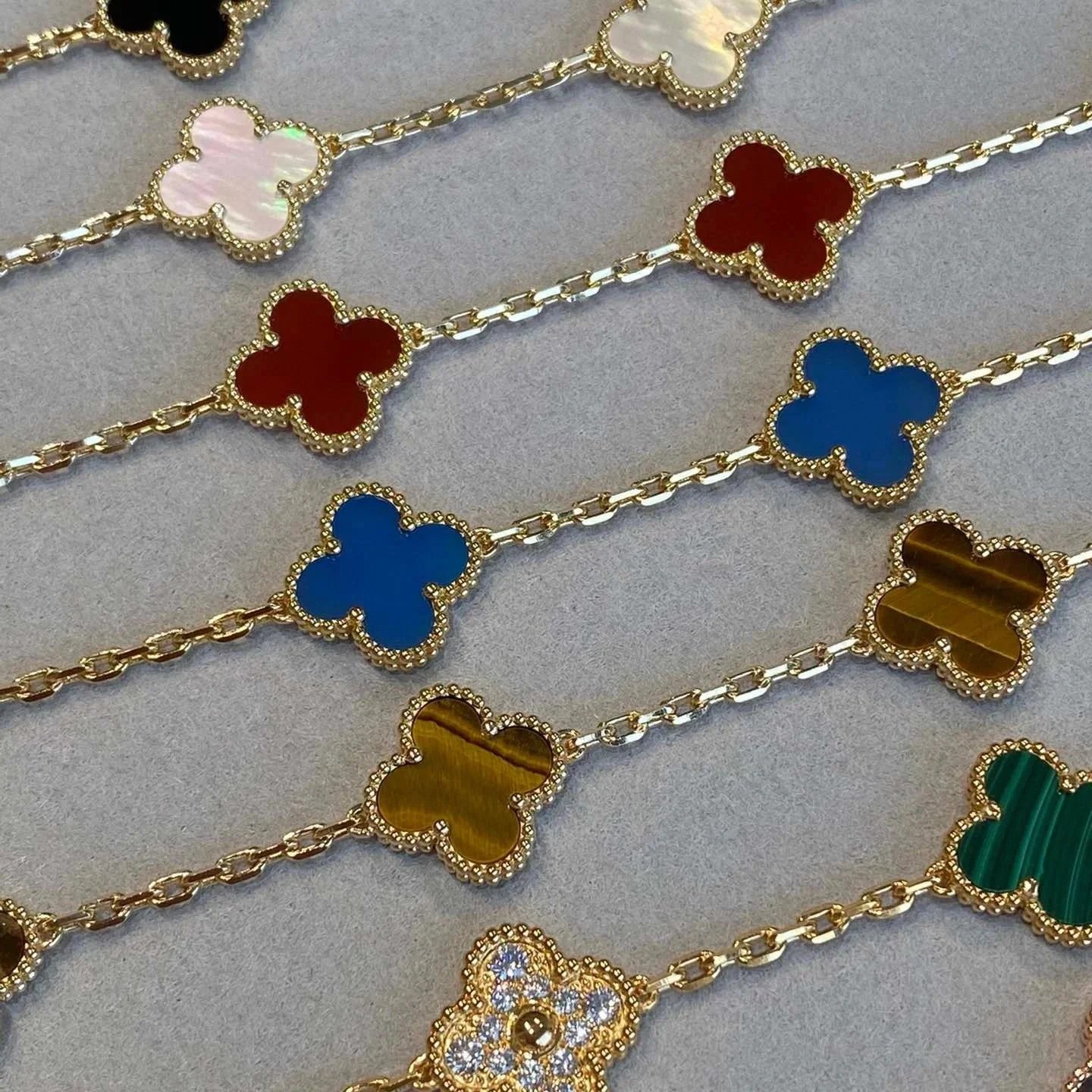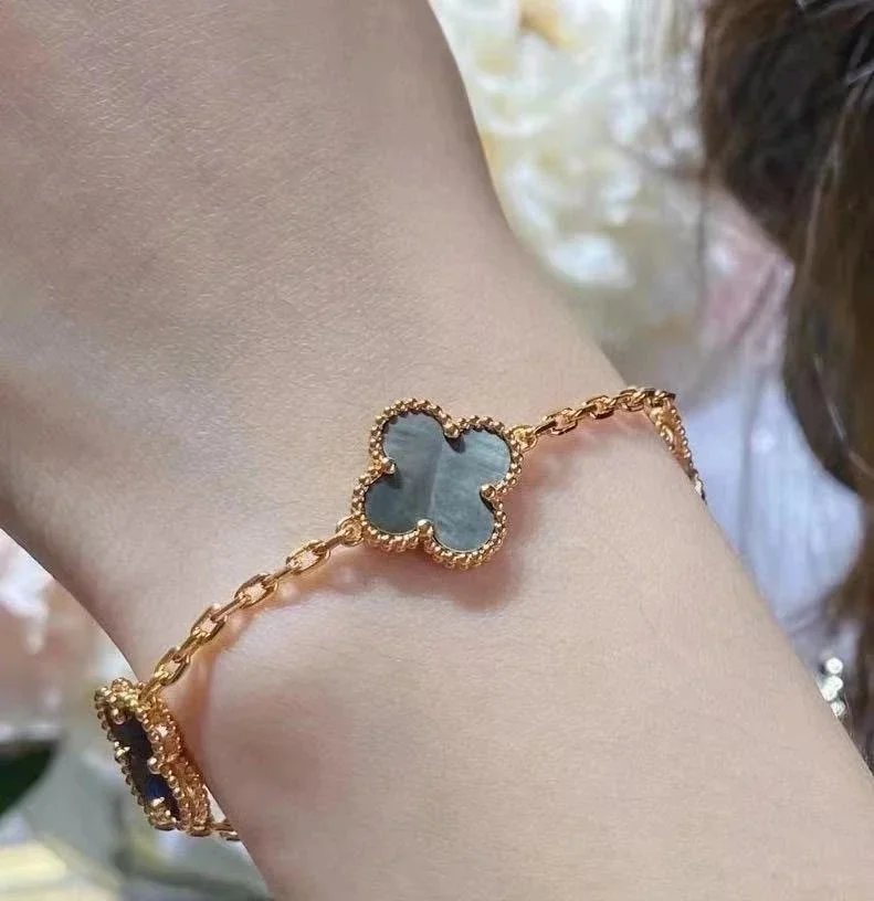 Elevate your style with these premium V-gold high-version clover chain bracelets. Featuring elegant clover-shaped links in multiple colors and finishes, perfect for luxury lovers.