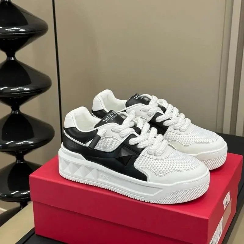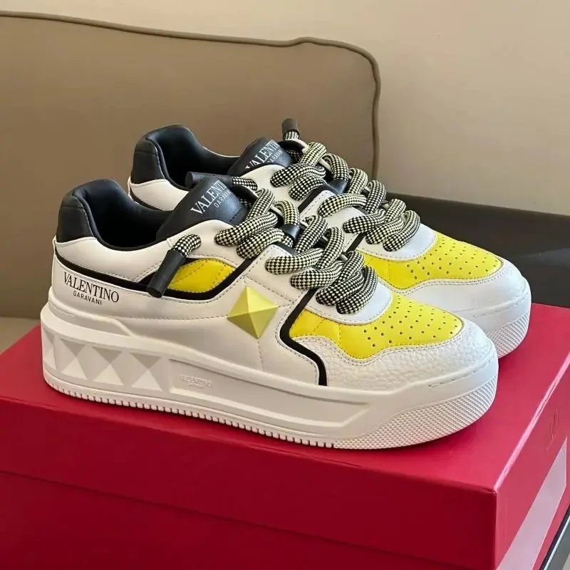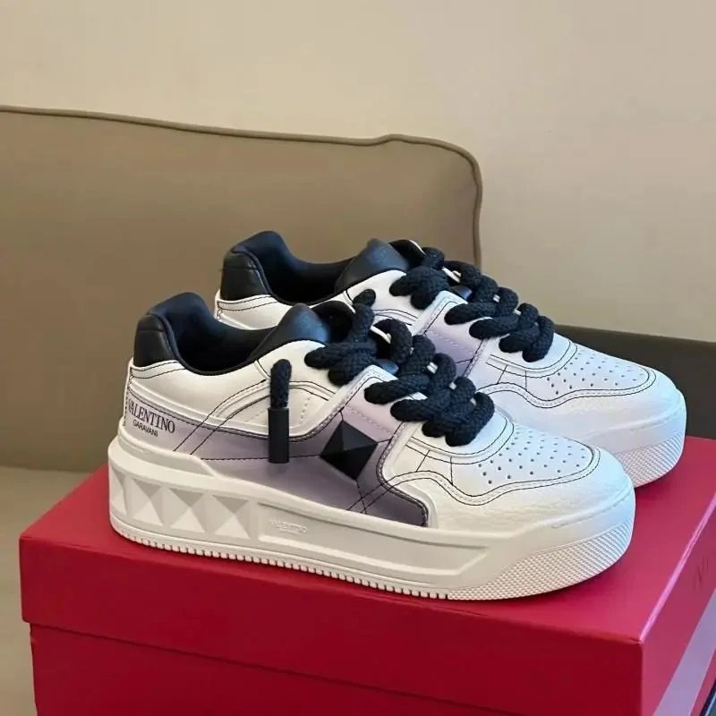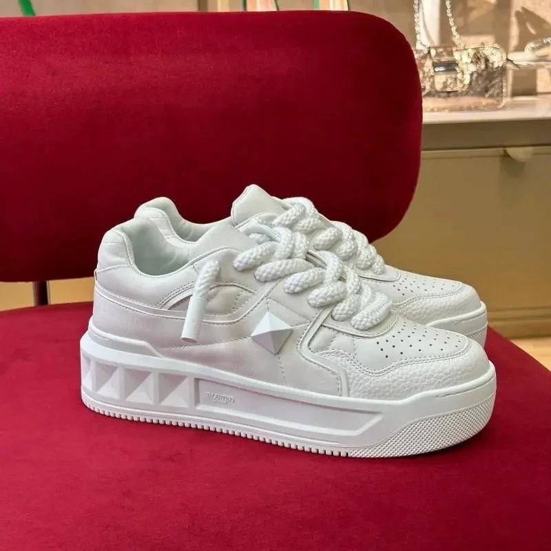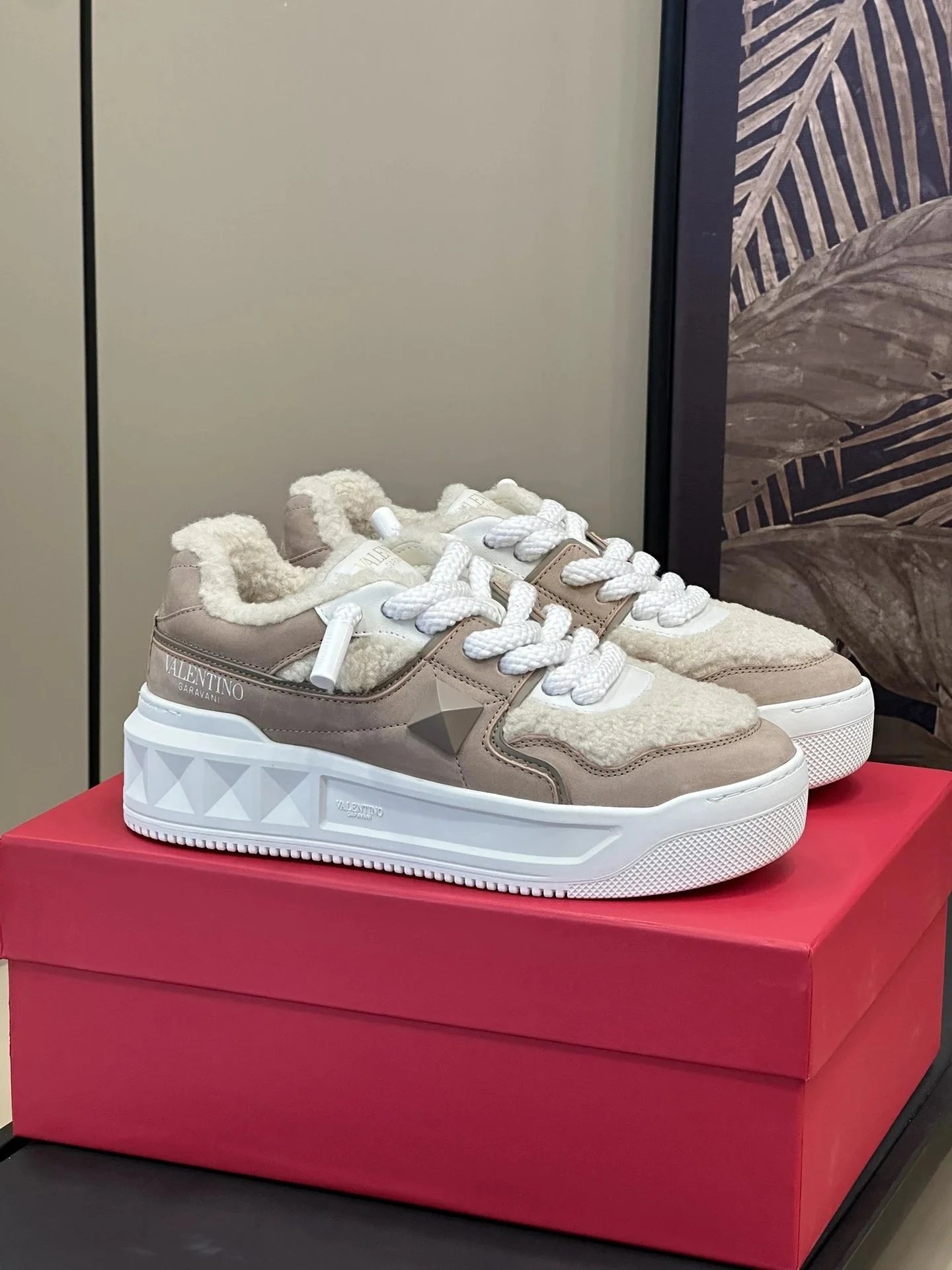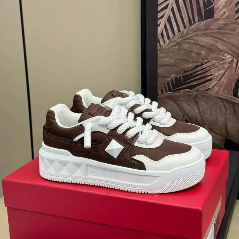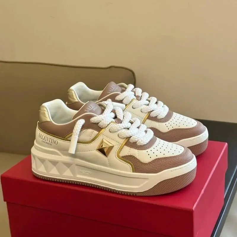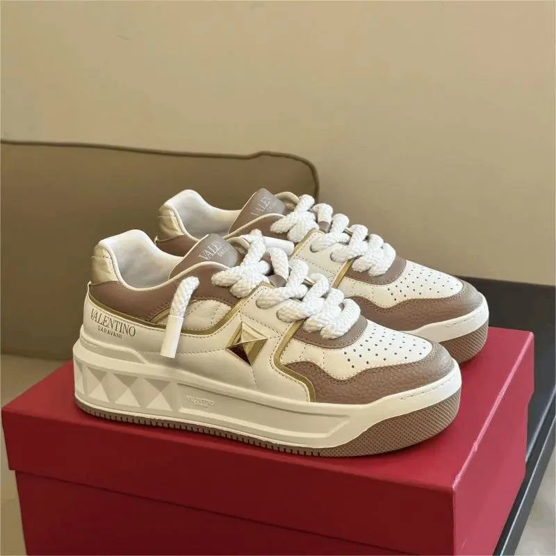 Elevate your look with Valentino Garavani's premium white and tan platform sneakers, featuring bold branding and a stylish perforated design.