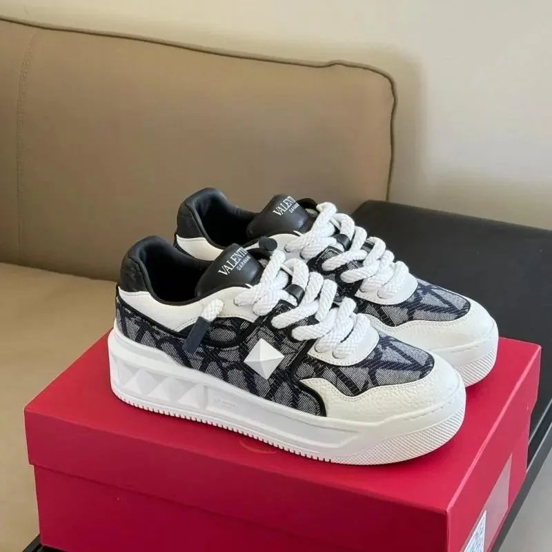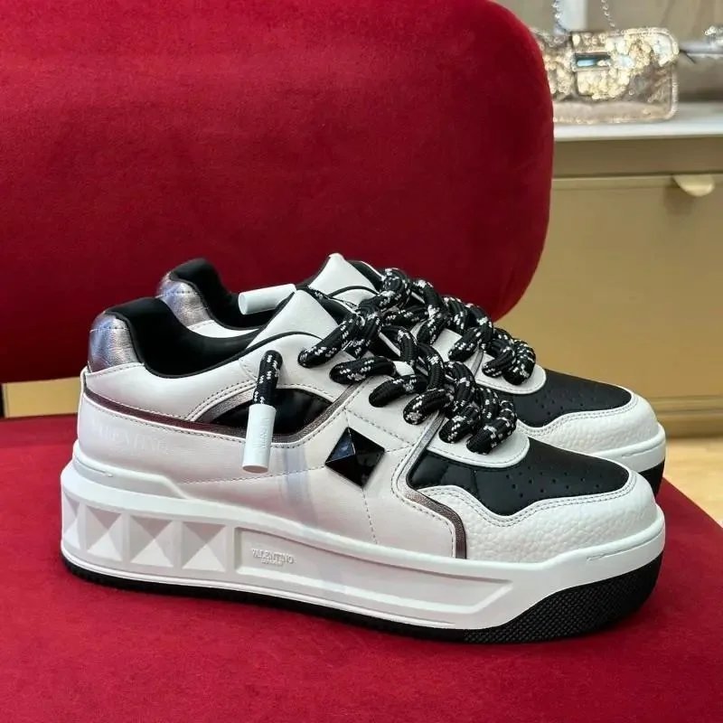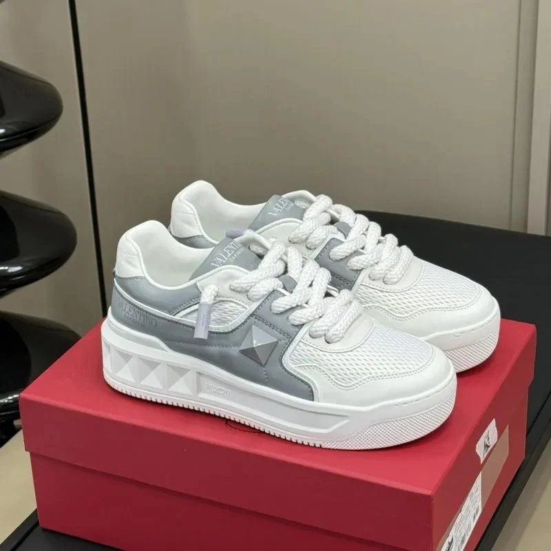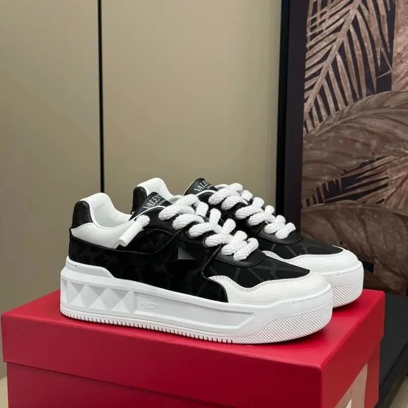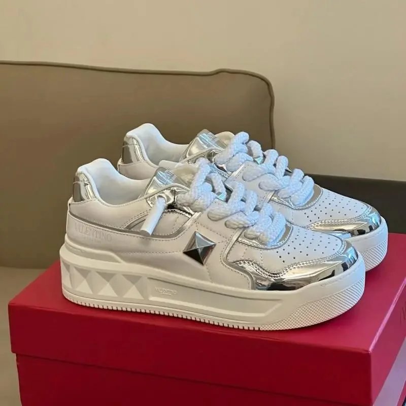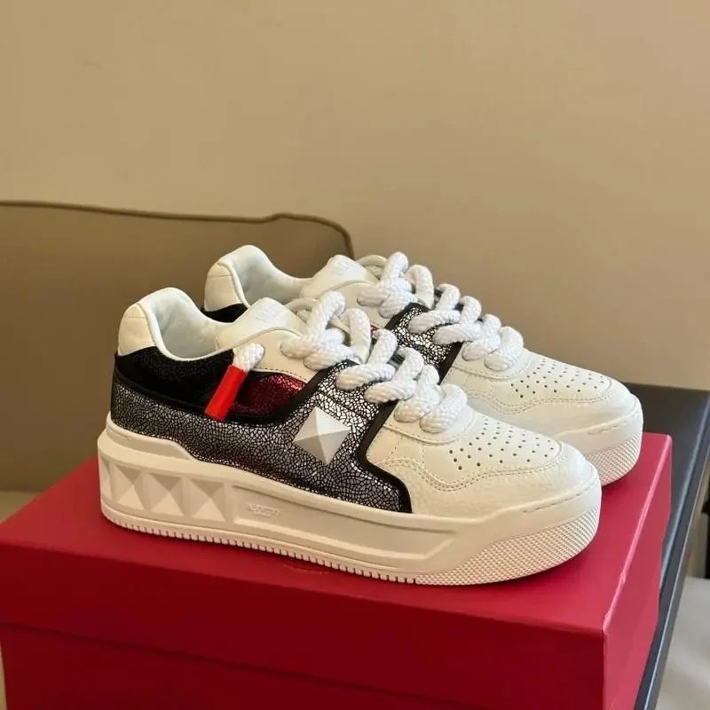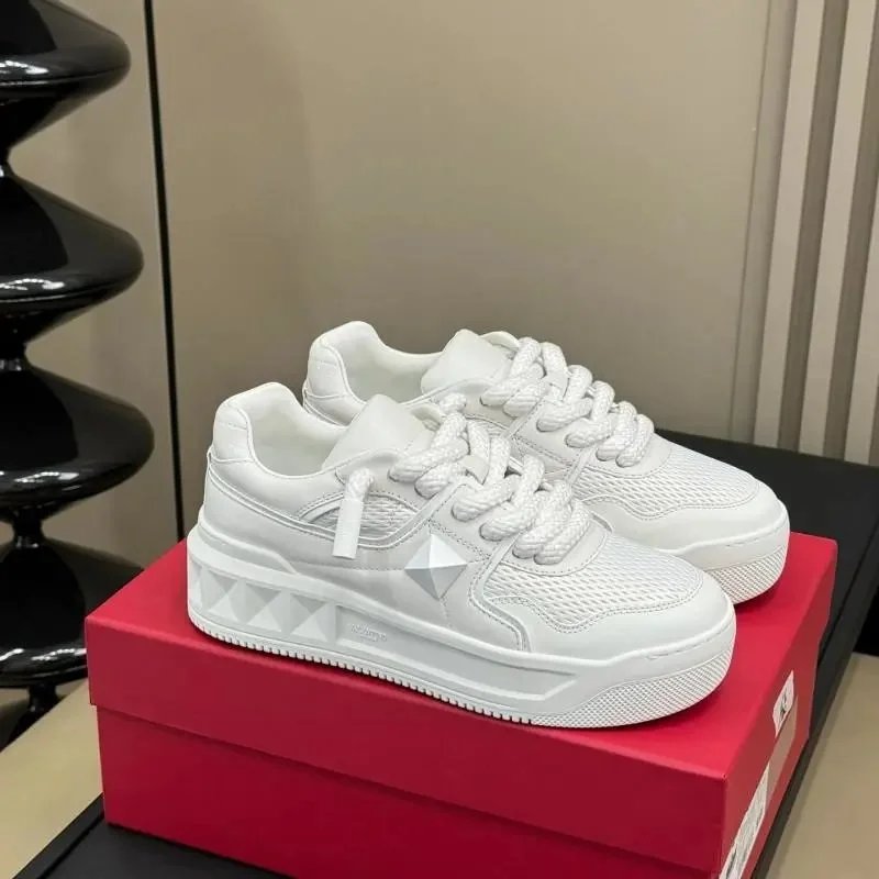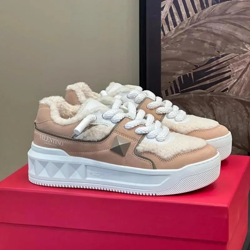 Elevate your look with Valentino Garavani's premium white and tan platform sneakers, featuring bold branding and a stylish perforated design.