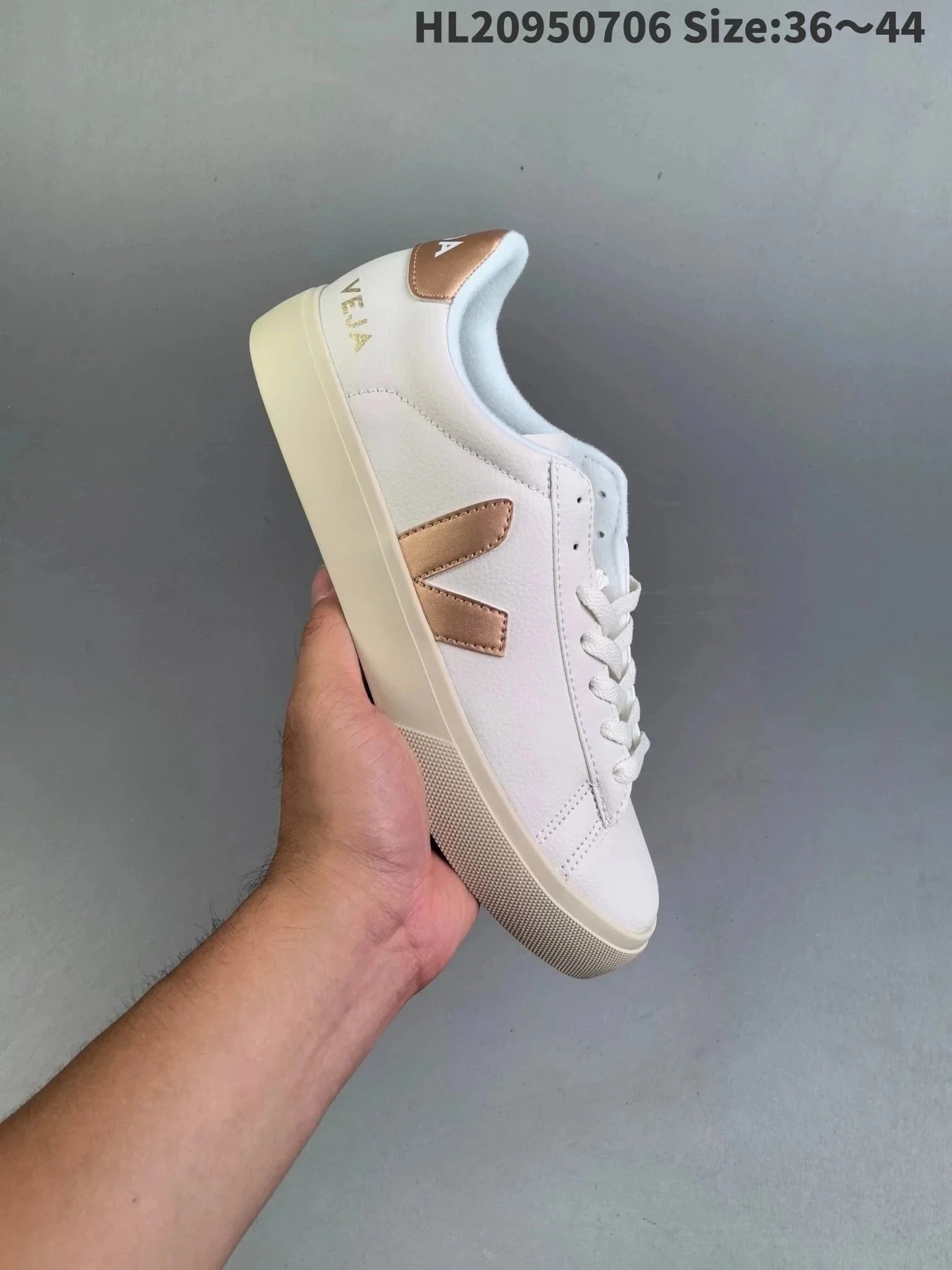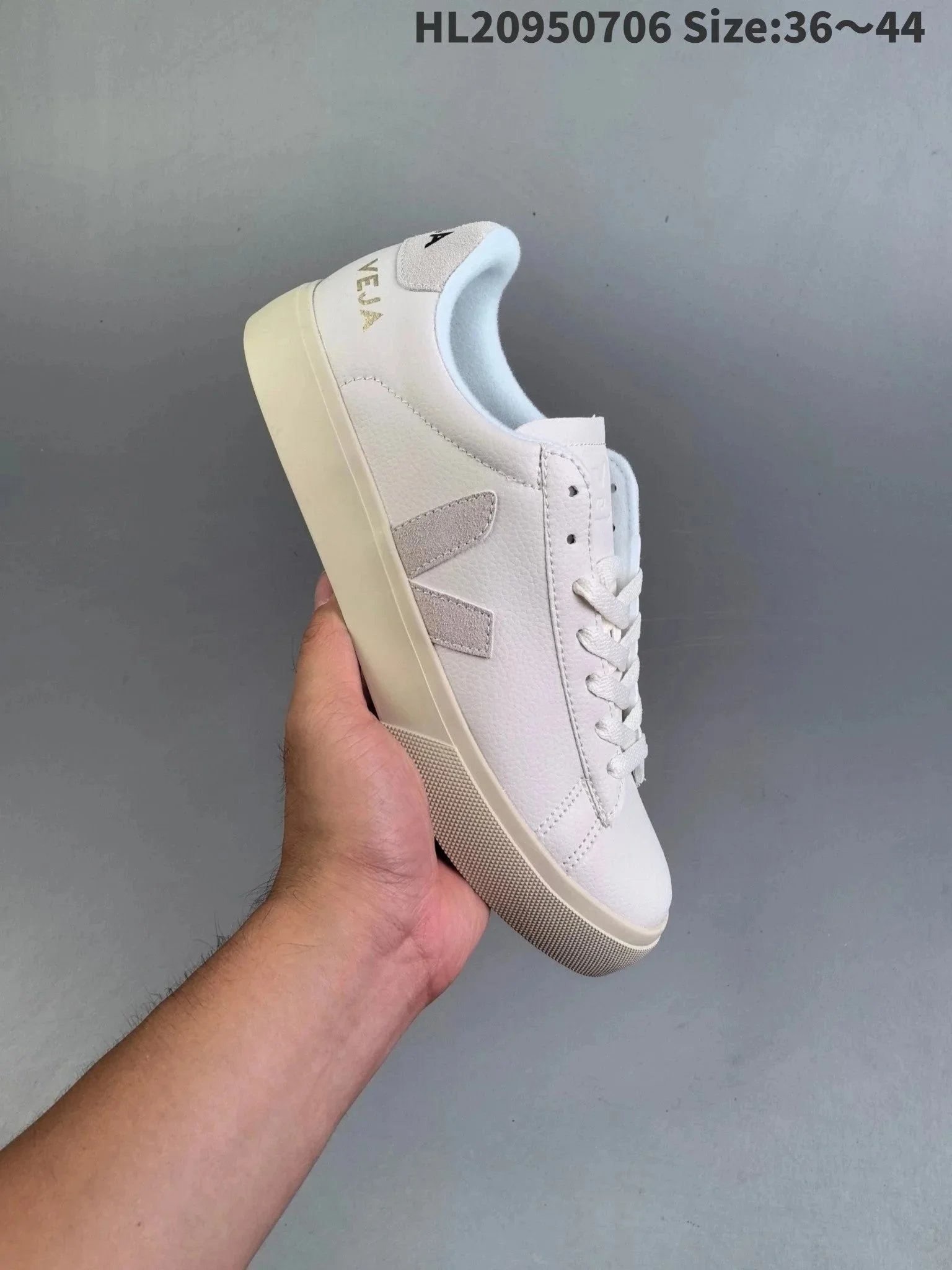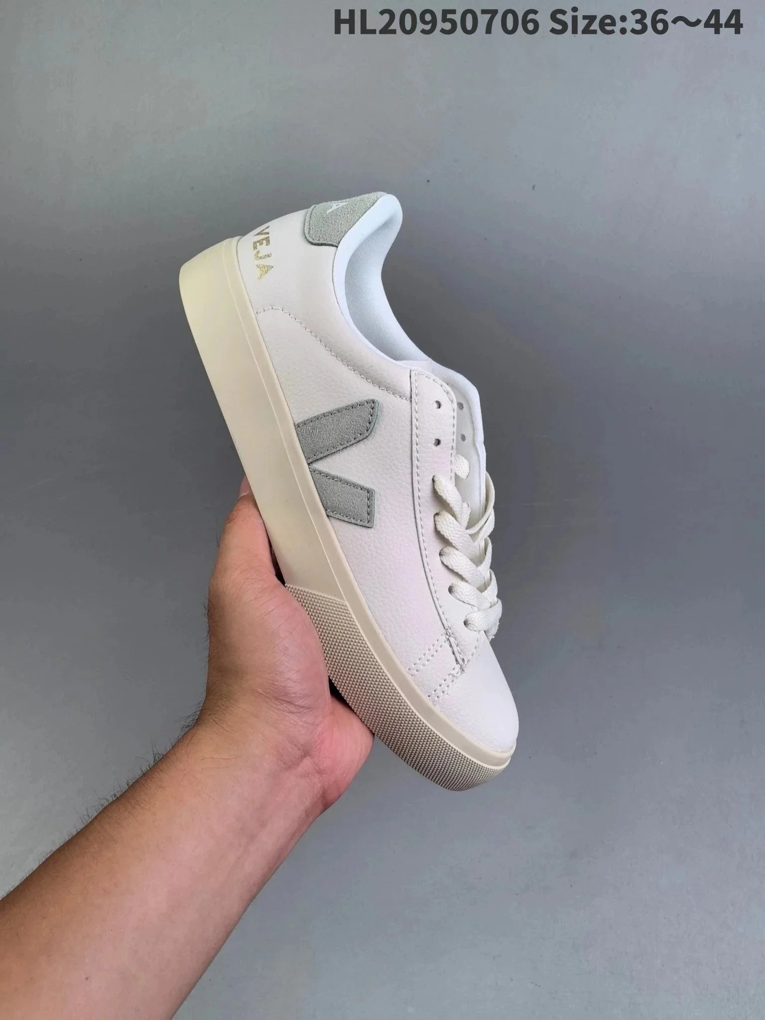 Classic Veja V-10 white leather sneakers featuring a signature green 'V' logo and eco-conscious design, perfect for everyday wear.