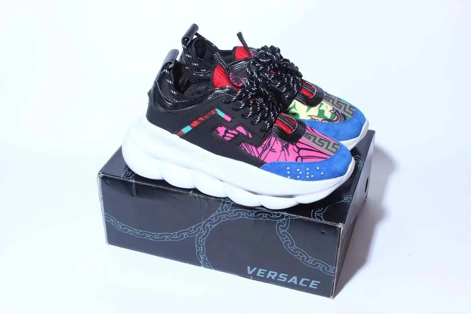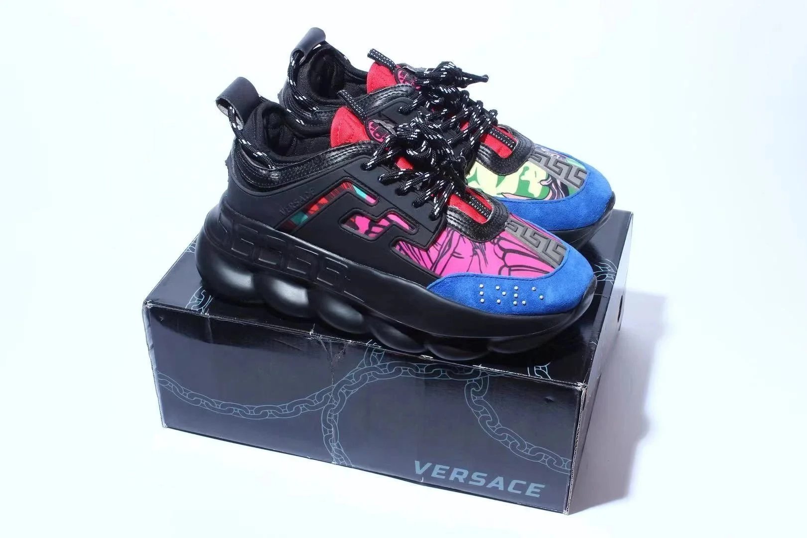 Discover the bold and luxurious Versace chunky sneaker collection featuring vibrant colors, iconic patterns, and signature Medusa detailing for a statement look.