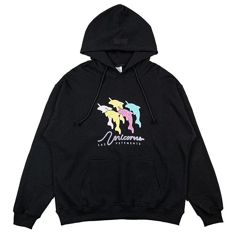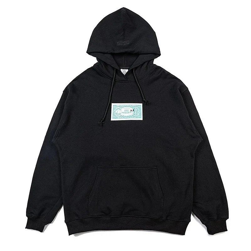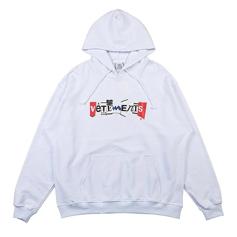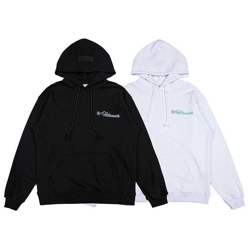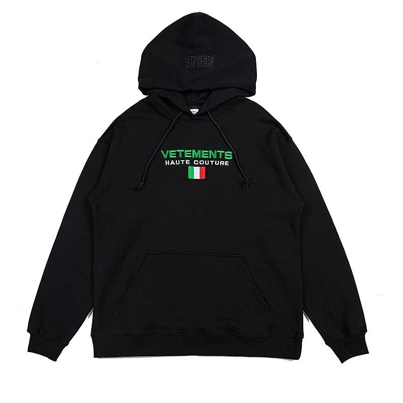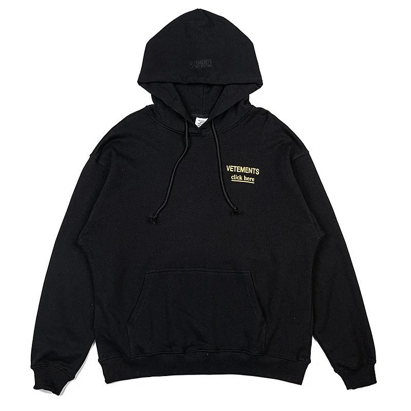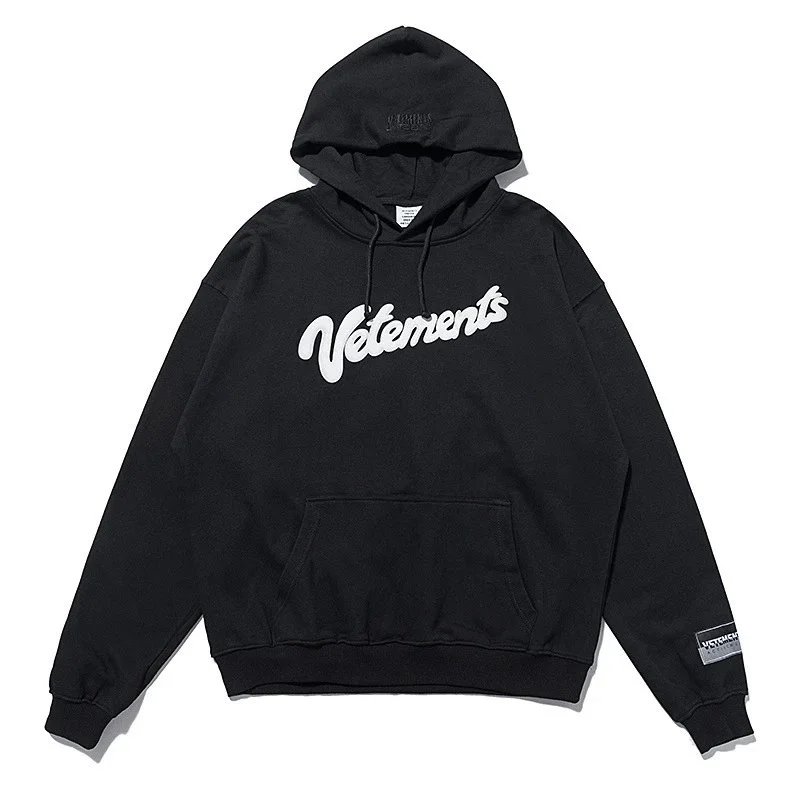 Bold black Vetements hoodie featuring a striking 'Restricted' R-rating graphic inspired by adult entertainment ratings. A statement piece for edgy streetwear.