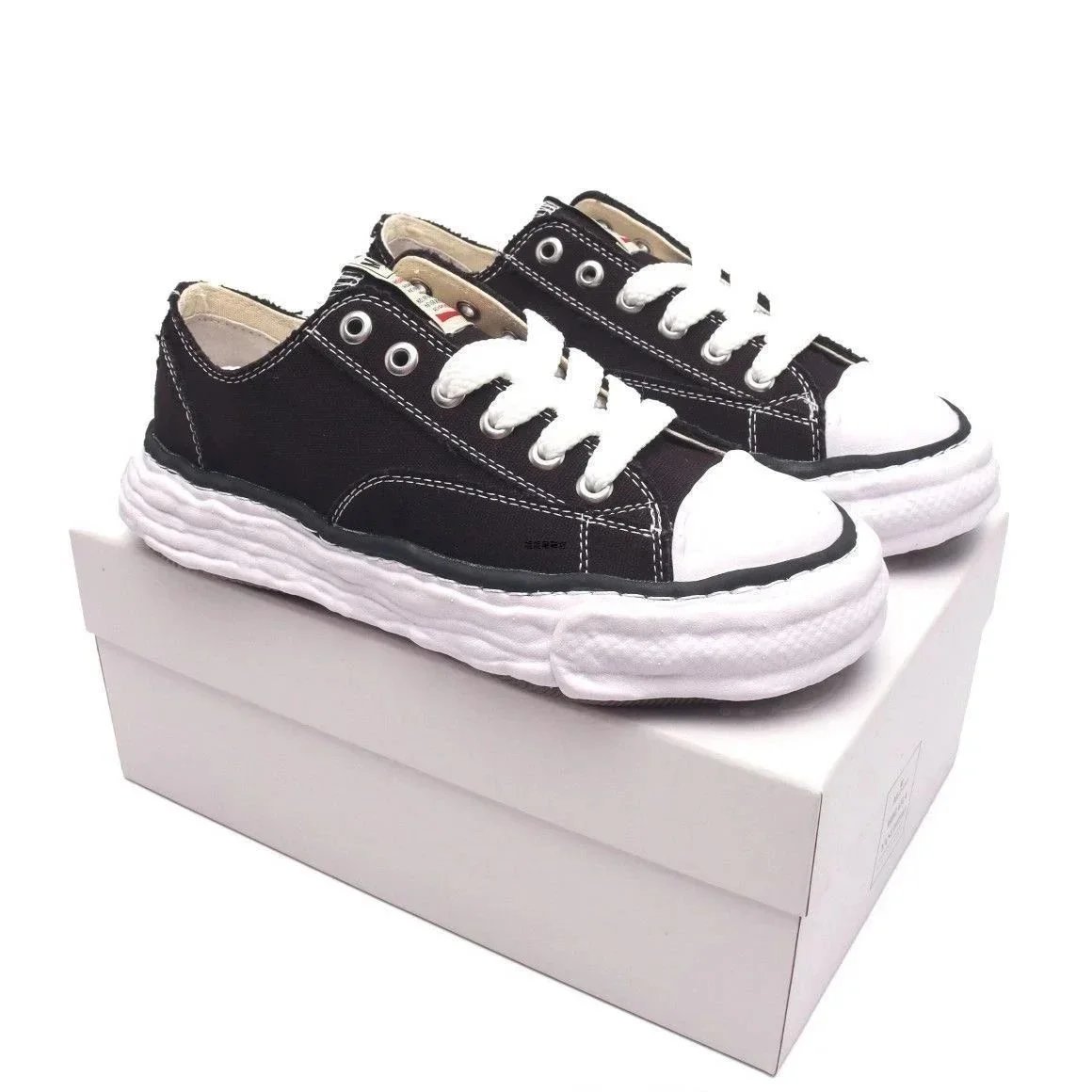 Yohji Yamamoto classic canvas sneakers featuring signature chunky rubber soles in black, white, and red. Ideal for urban style with distinctive silhouette and premium construction.