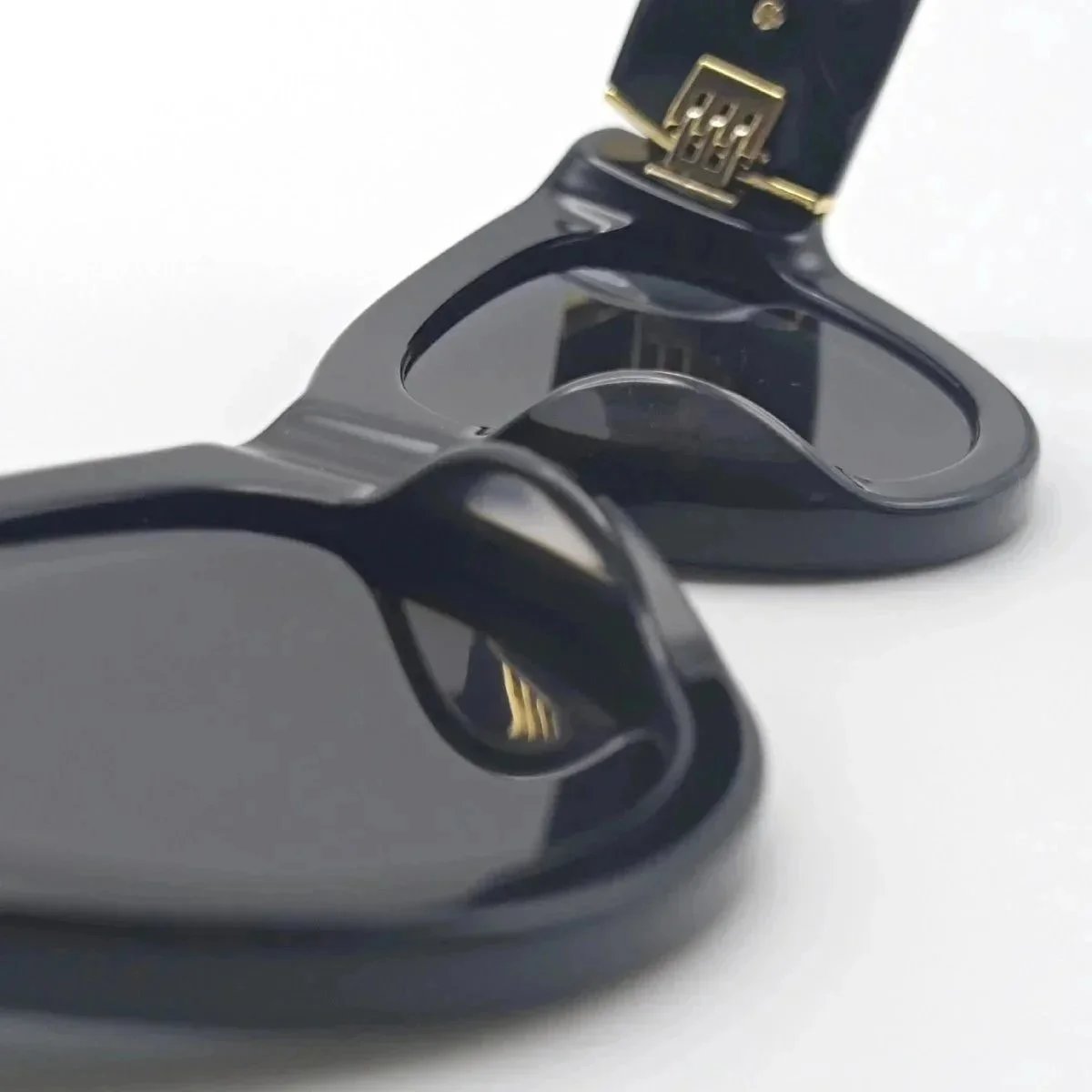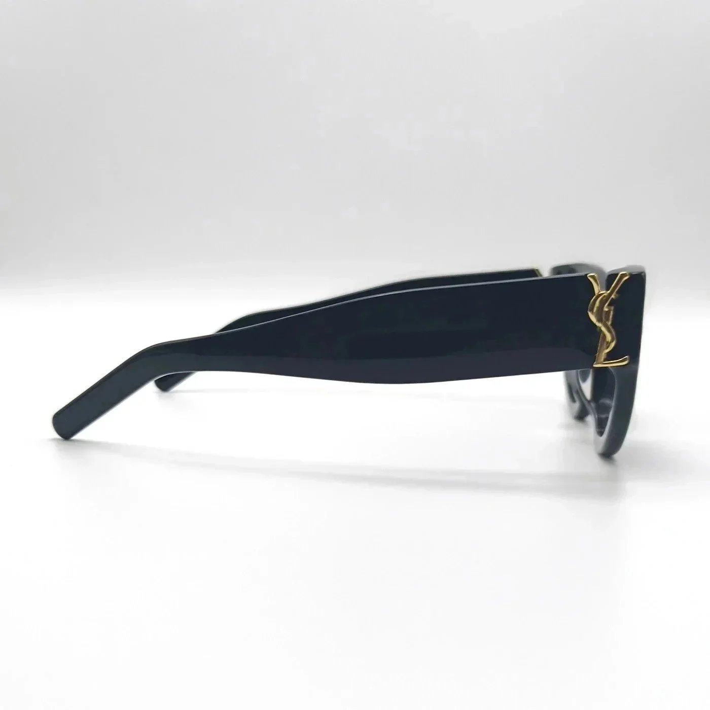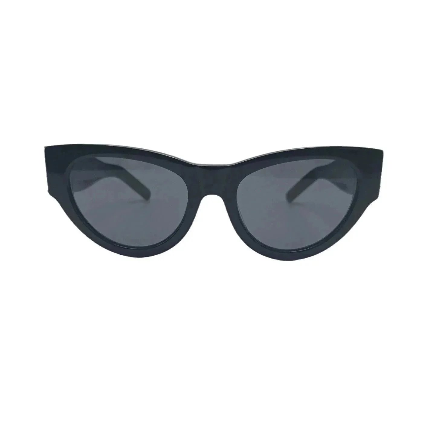 Elegant YSL black cat-eye sunglasses featuring a bold gold logo detail on the temples. Perfect for making a statement with timeless luxury and style.