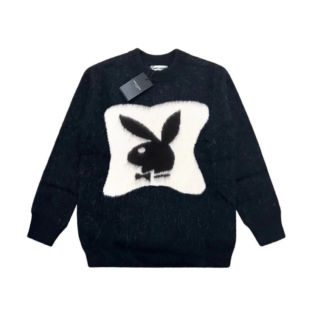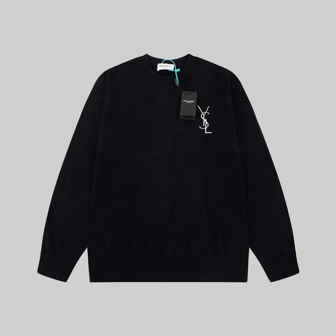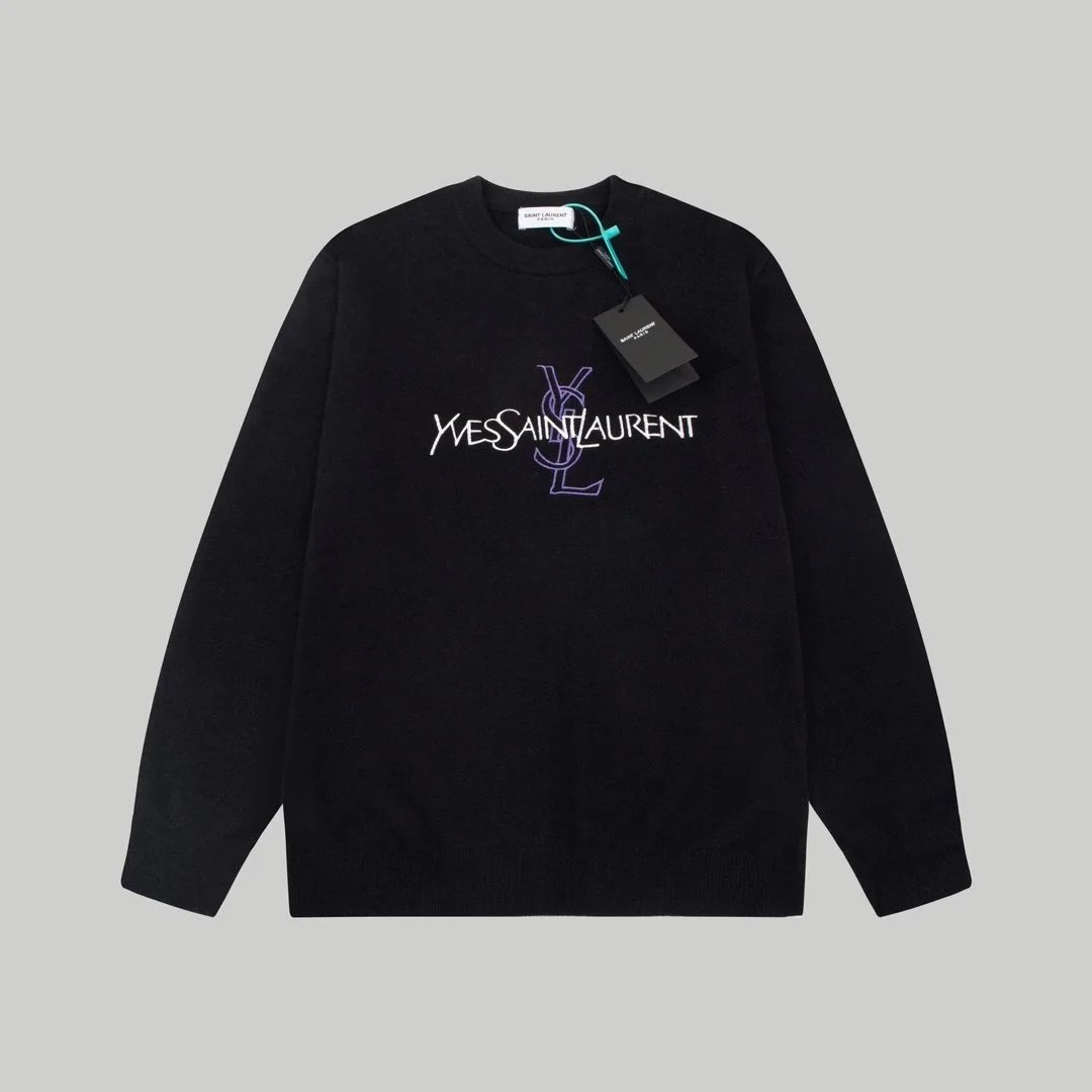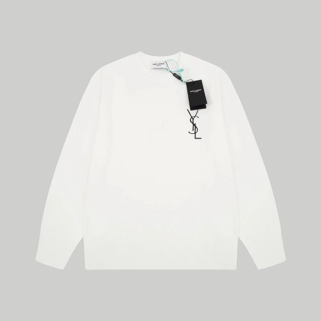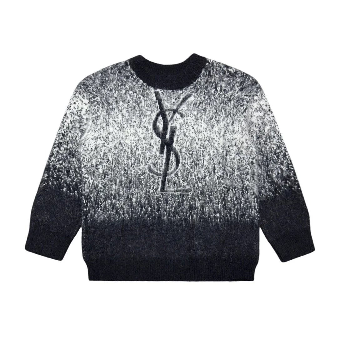 Elevate your wardrobe with this YSL gradient logo sweater featuring a bold monogram and striking black-to-white fade design.