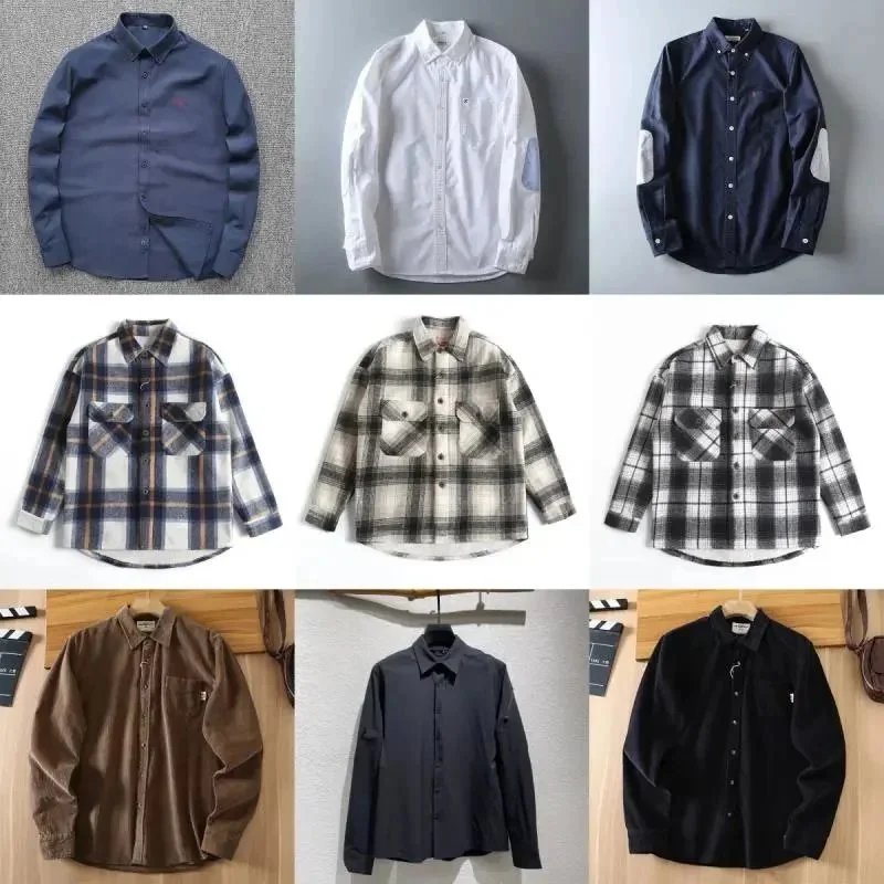 Men's Button-Up Shirts with Various Patterns and Colors