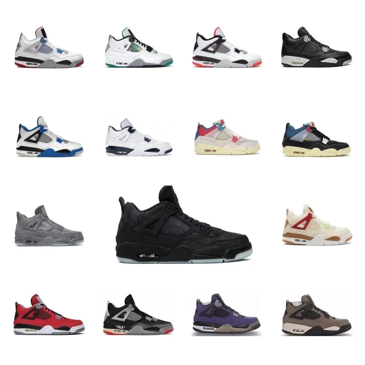Discover the iconic Air Jordan 4 collection featuring diverse colorways and signature design elements like the winged tongue and visible air unit. Perfect for collectors and daily wear.