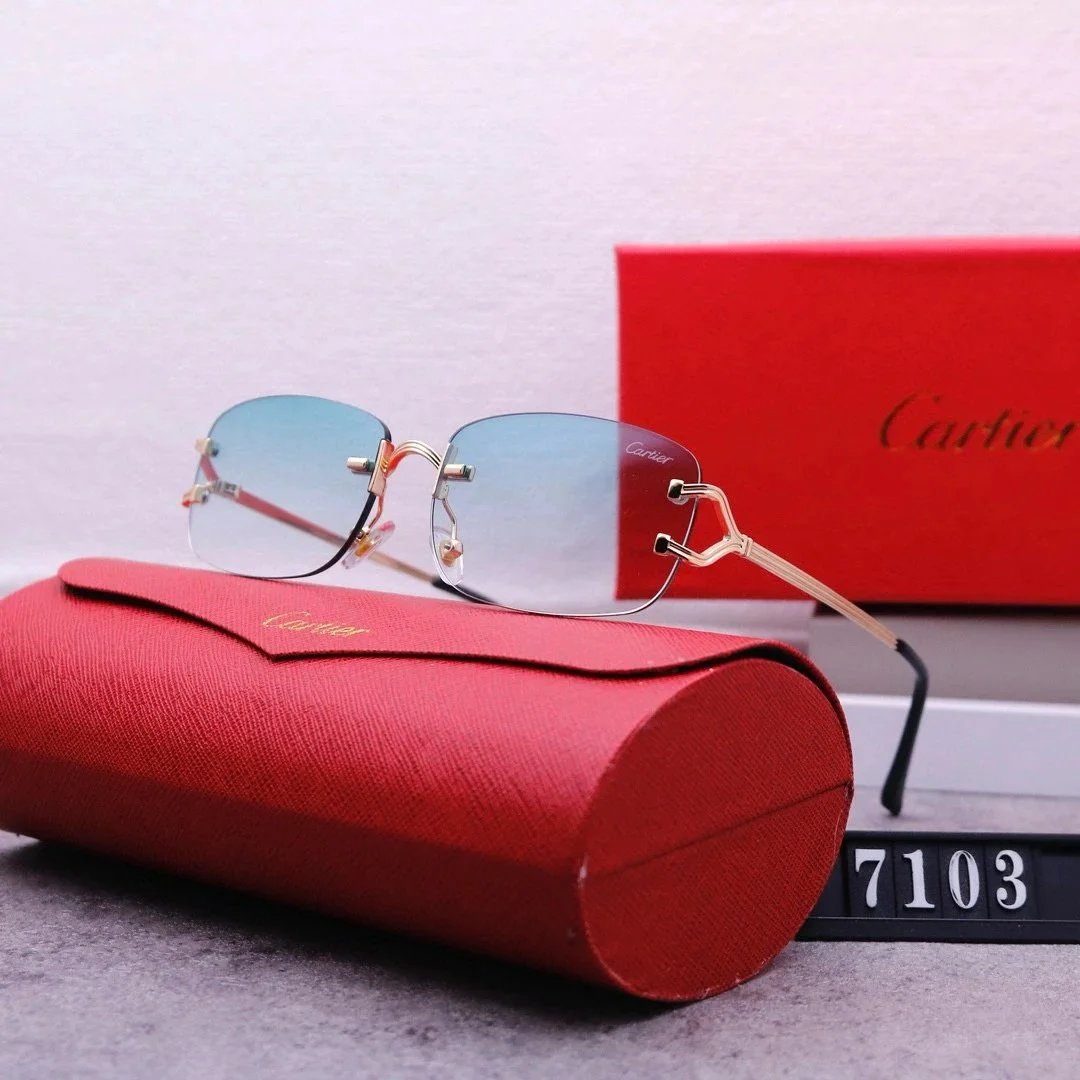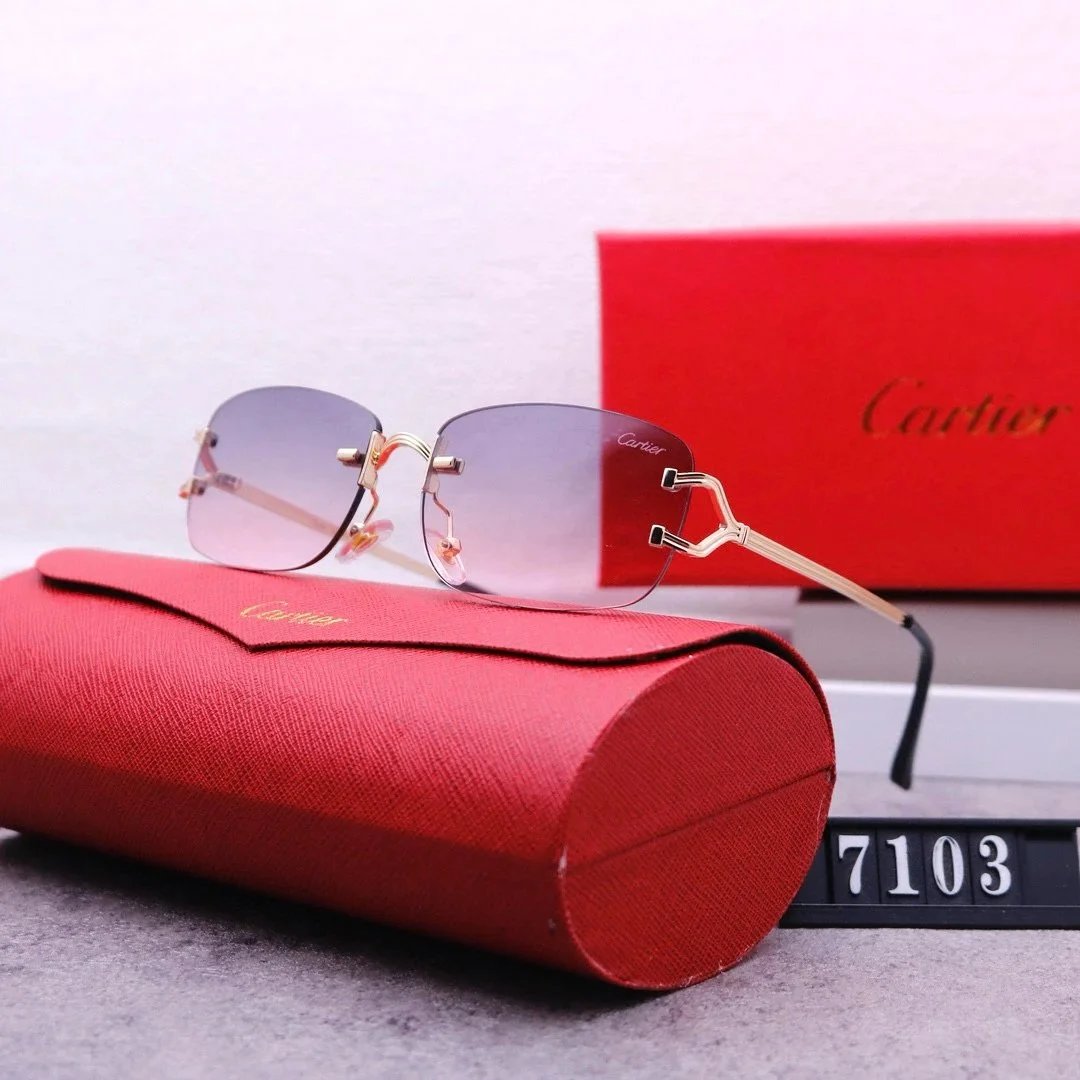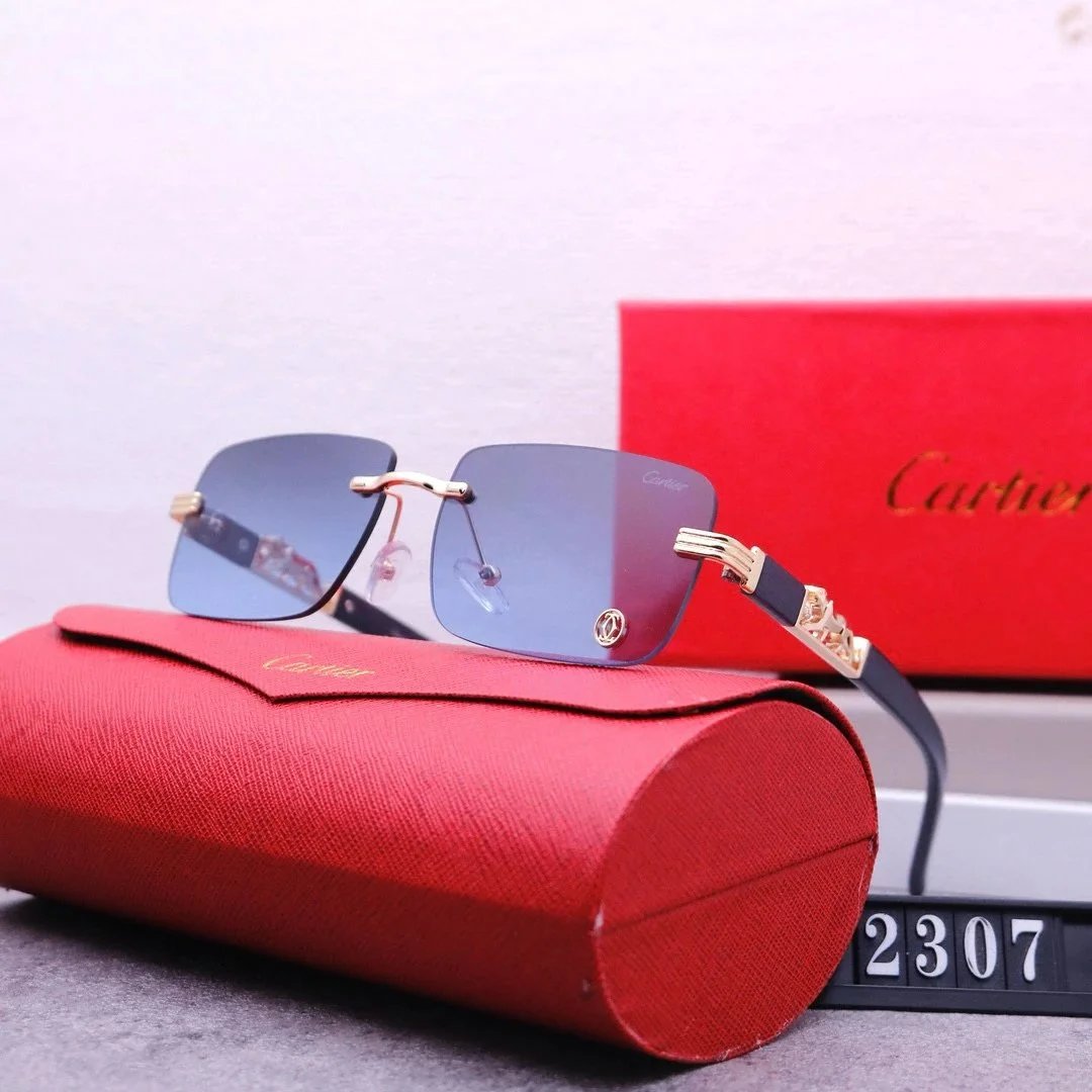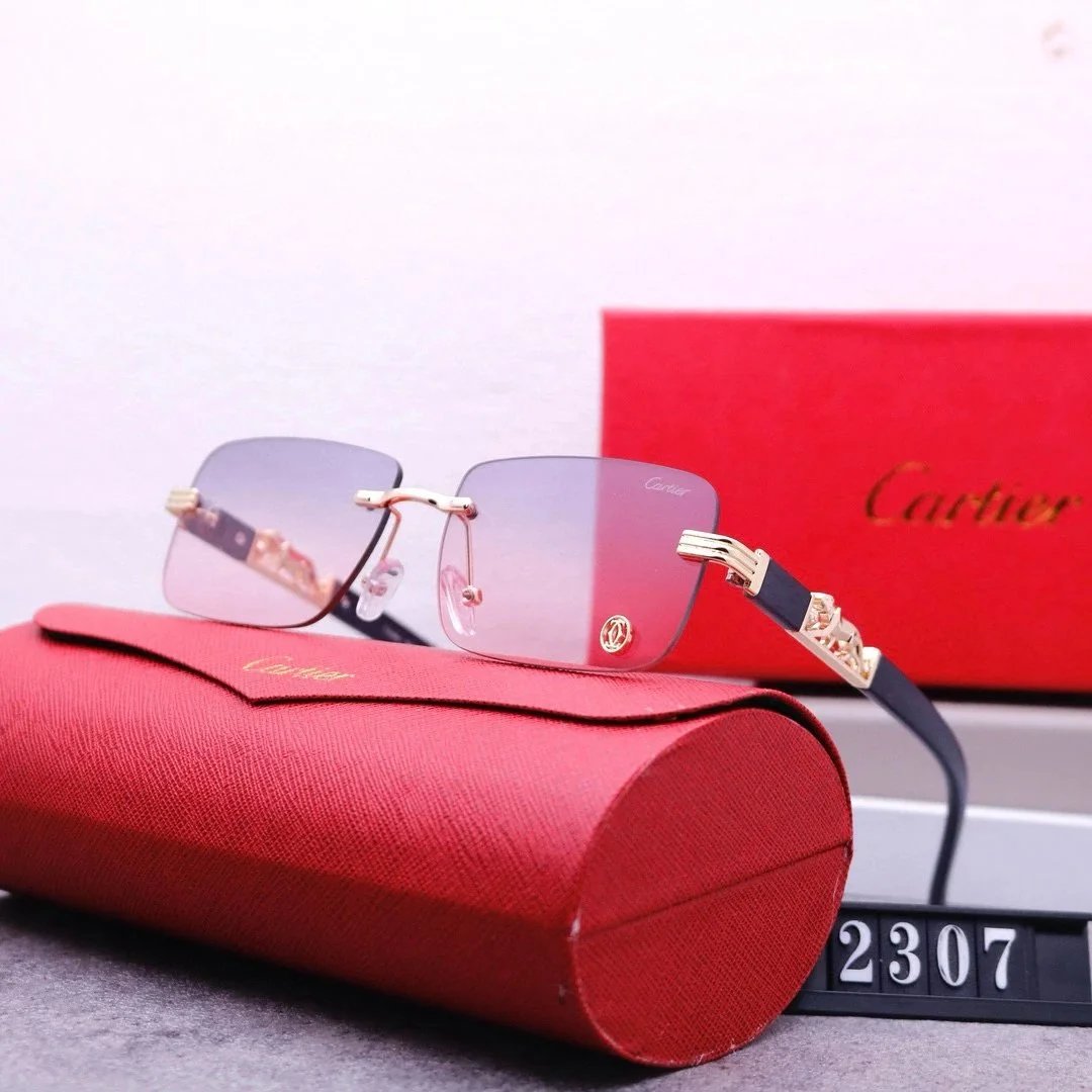 Elevate your look with Cartier’s iconic rimless octagonal sunglasses featuring sleek gradient lenses and gold-tone detailing. Perfect for luxury fashion enthusiasts.