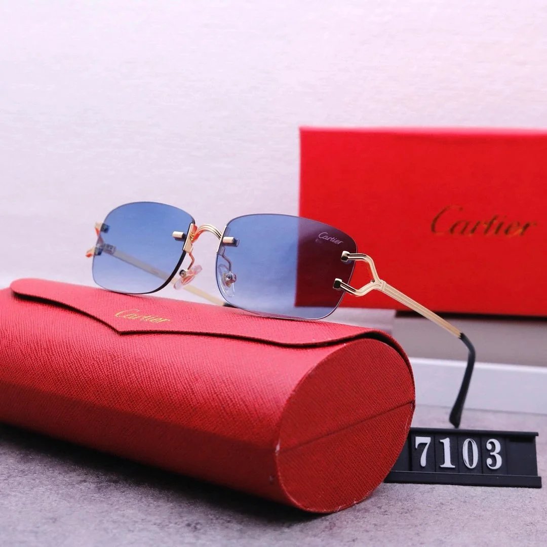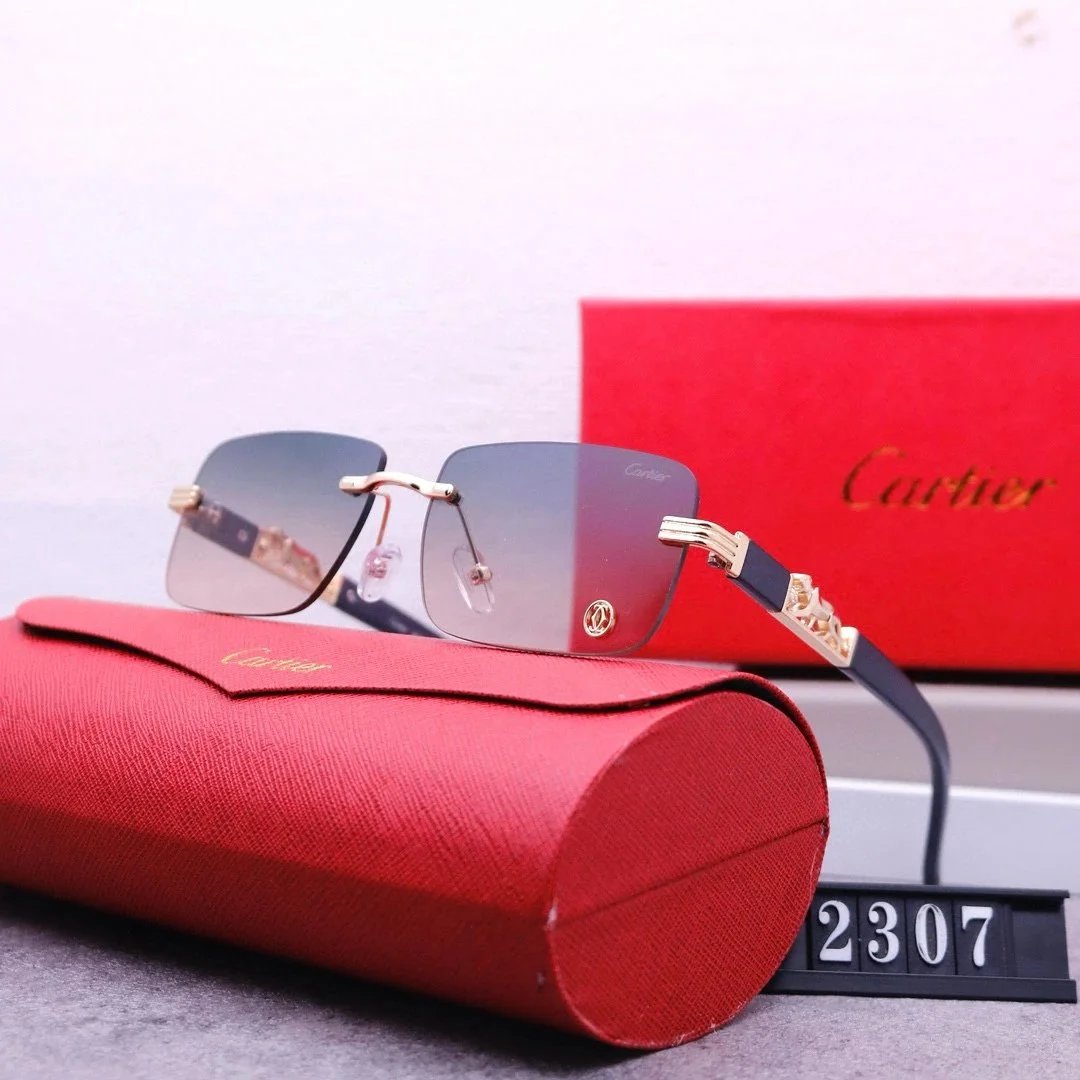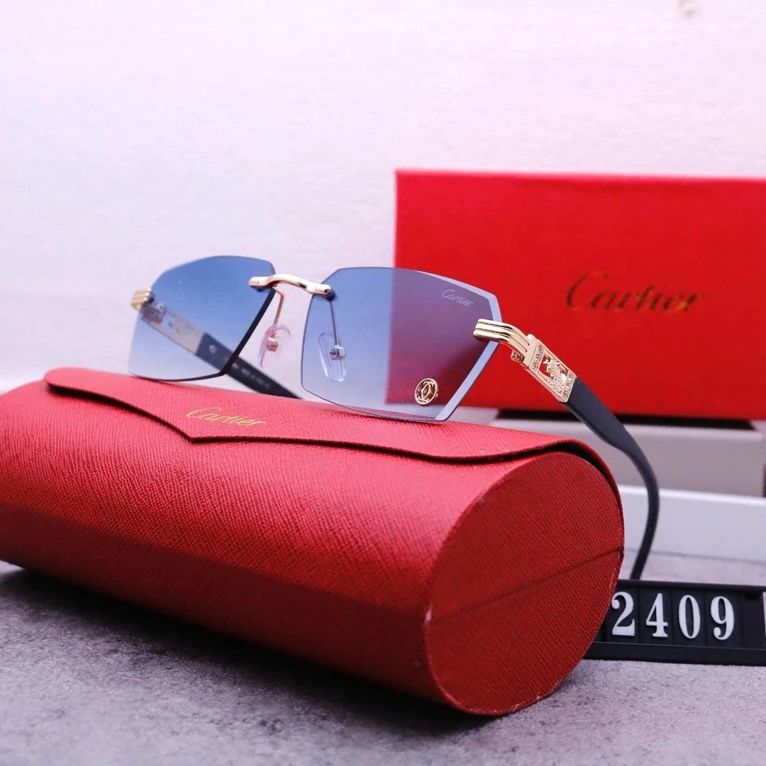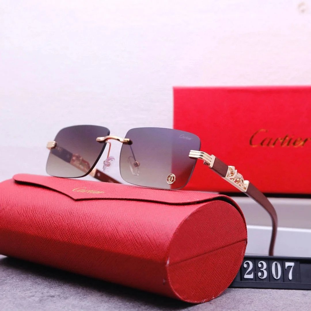 Elevate your look with Cartier’s iconic rimless octagonal sunglasses featuring sleek gradient lenses and gold-tone detailing. Perfect for luxury fashion enthusiasts.