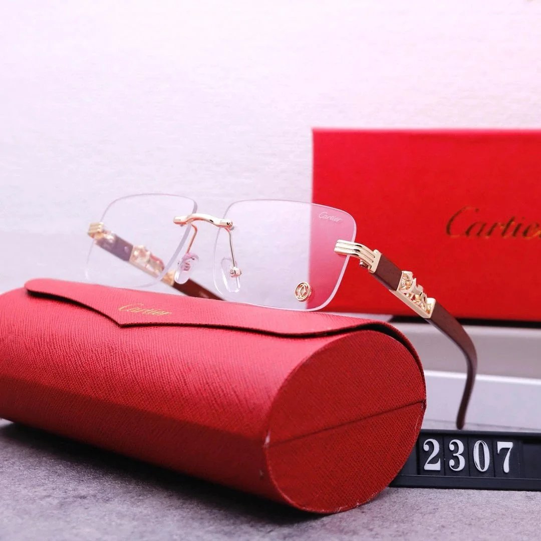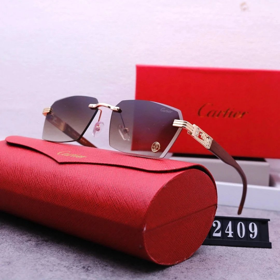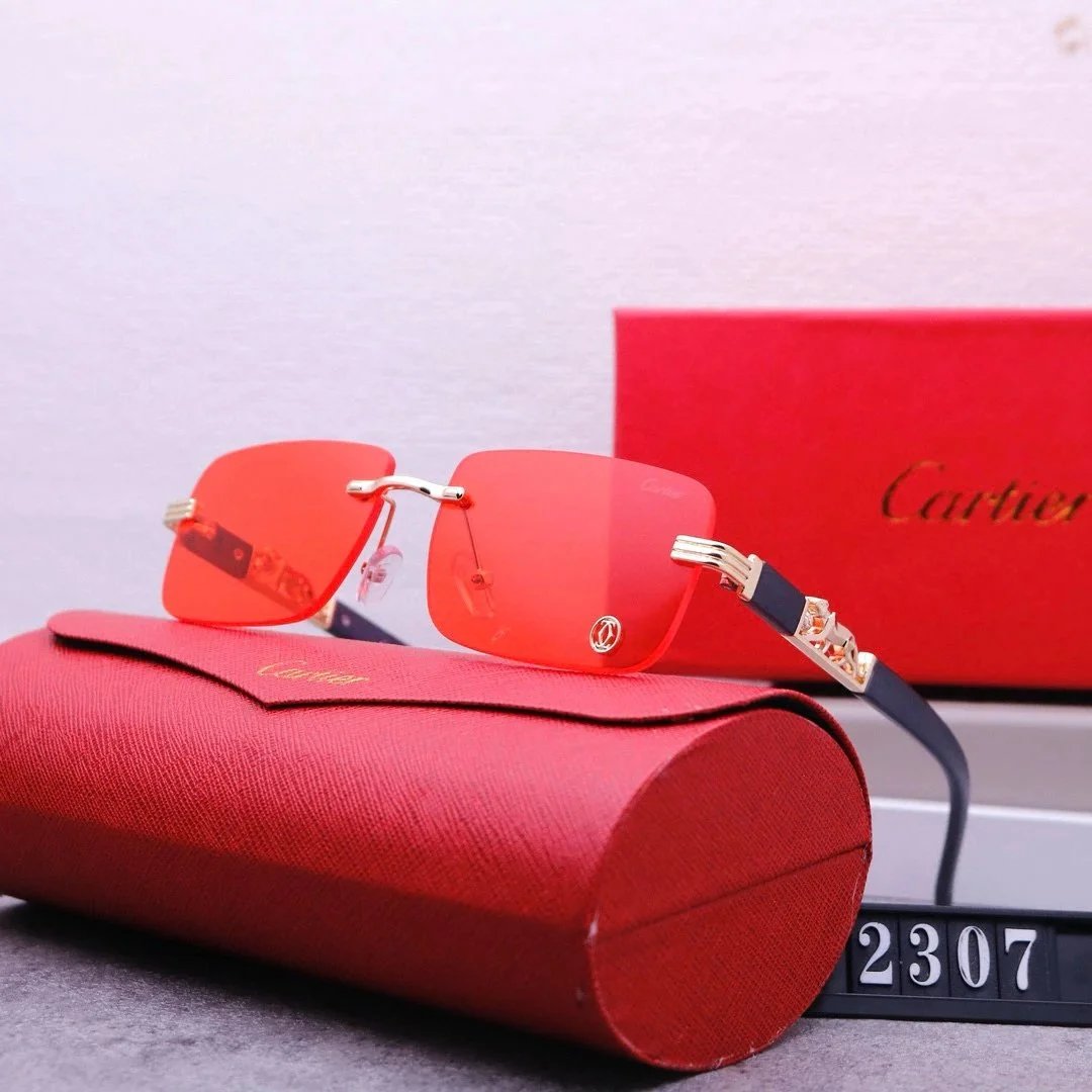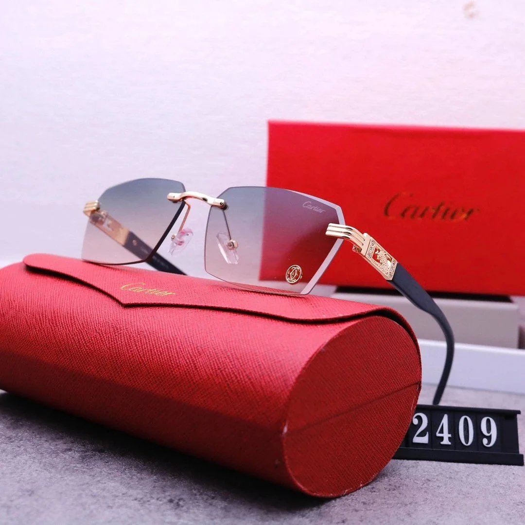 Elevate your look with Cartier’s iconic rimless octagonal sunglasses featuring sleek gradient lenses and gold-tone detailing. Perfect for luxury fashion enthusiasts.