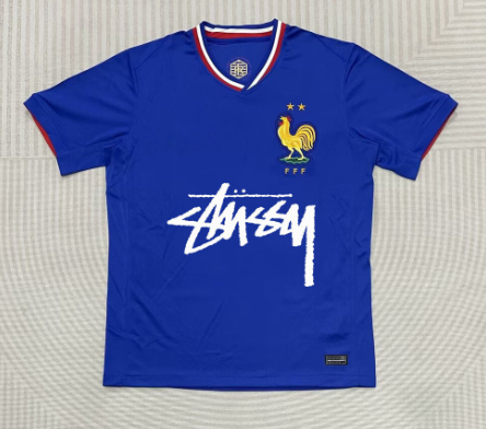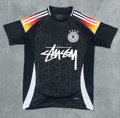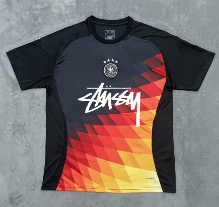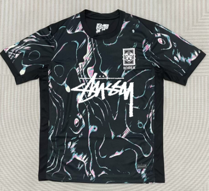 Collaborative Corinthians x Stussy jersey featuring a bold gradient design and signature Stussy logo. Ideal for fans seeking unique sports merchandise with streetwear flair.