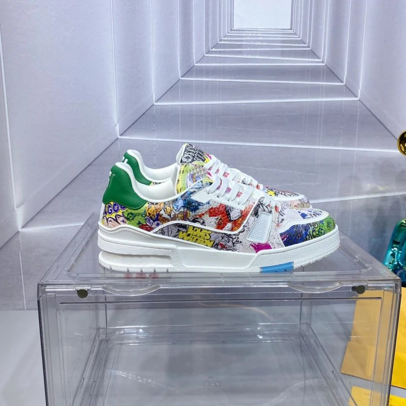 Discover a vibrant collection of chunky low-top sneakers in bold colors and unique patterns, perfect for adding flair to any casual outfit.