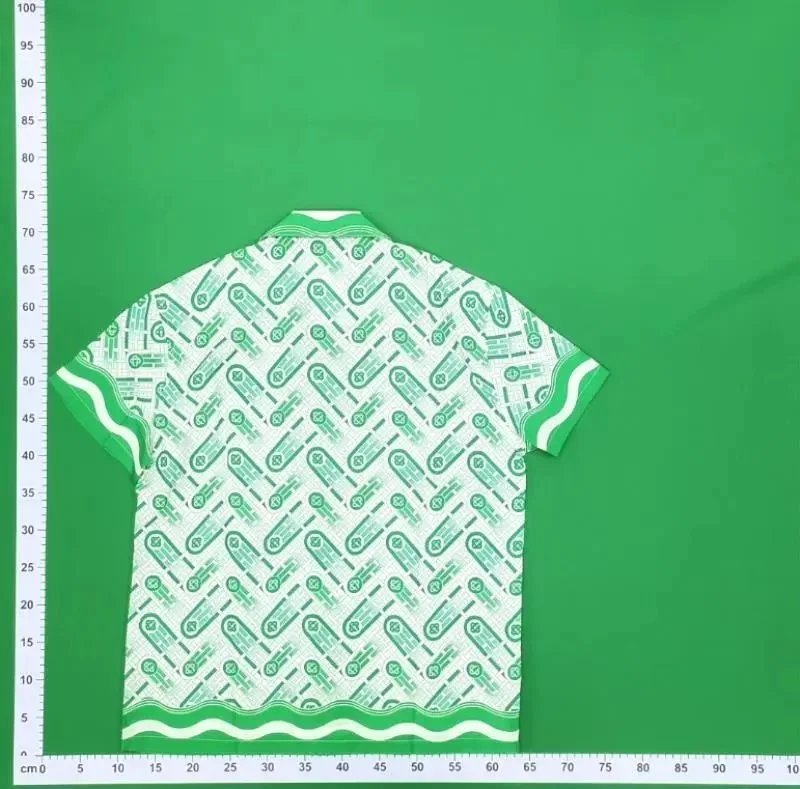 A stylish men’s two-piece set featuring a short-sleeve button-up shirt and matching shorts with a bold green wave pattern. Ideal for casual summer days or loungewear.