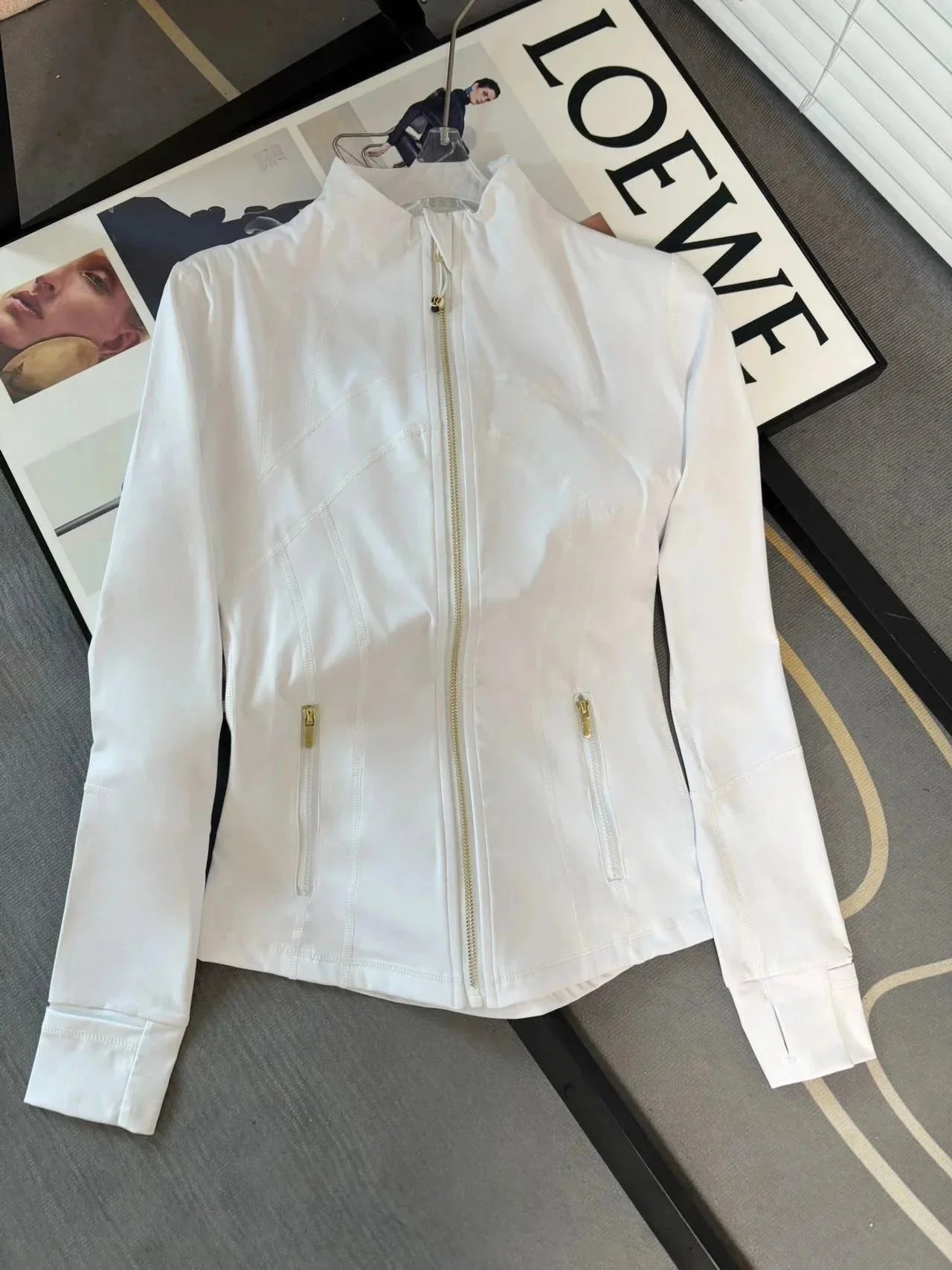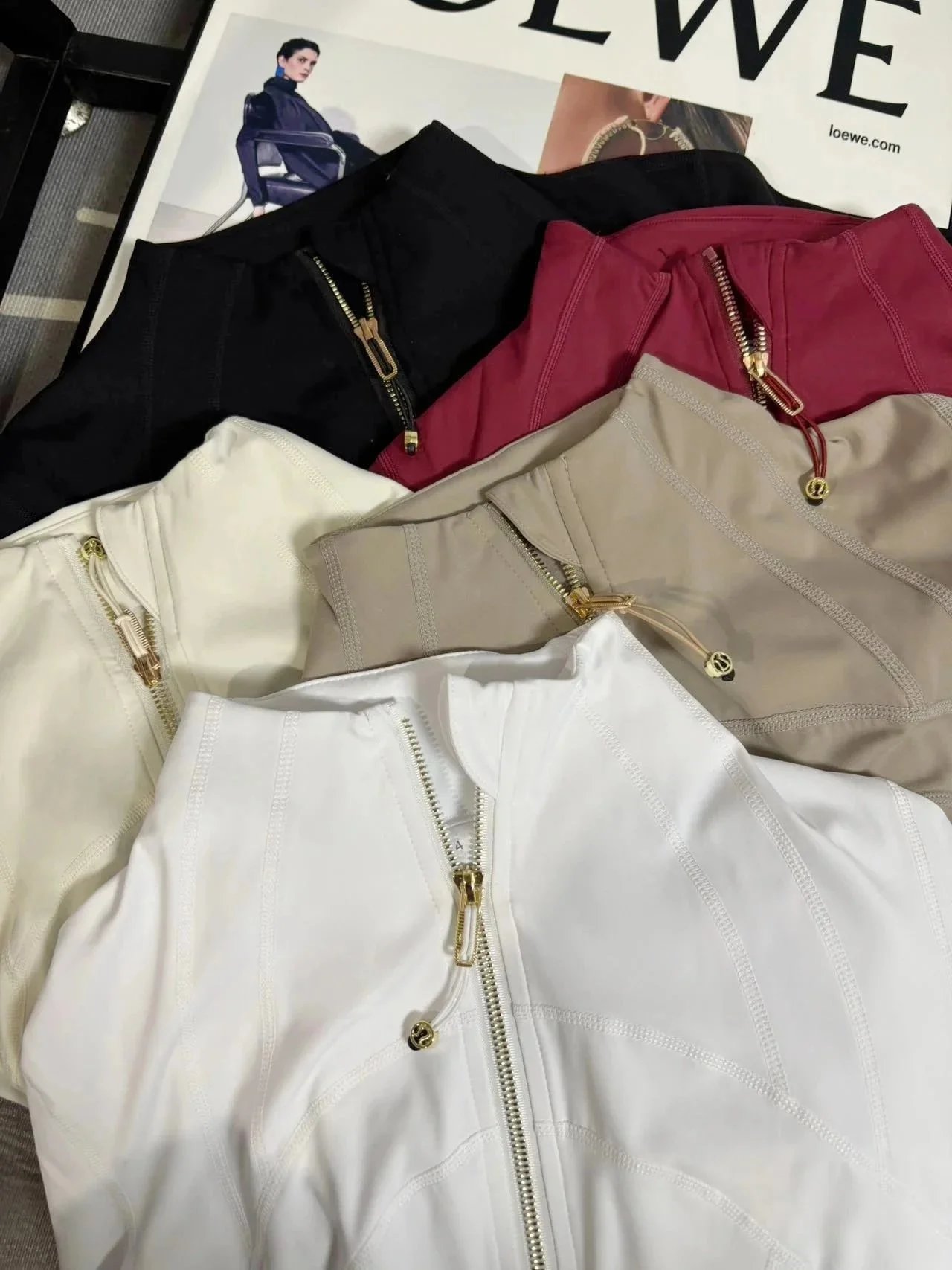 Stylish and versatile zip-up jackets for women, available in multiple colors including white, beige, gray, red, and black. Perfect for casual or active wear.