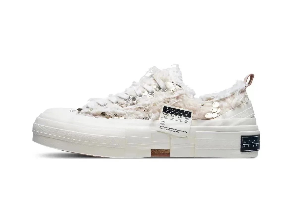 Stylish G.O.P low-top sneakers featuring a bold paisley pattern in black and white. Perfect for streetwear enthusiasts seeking unique, eye-catching footwear.