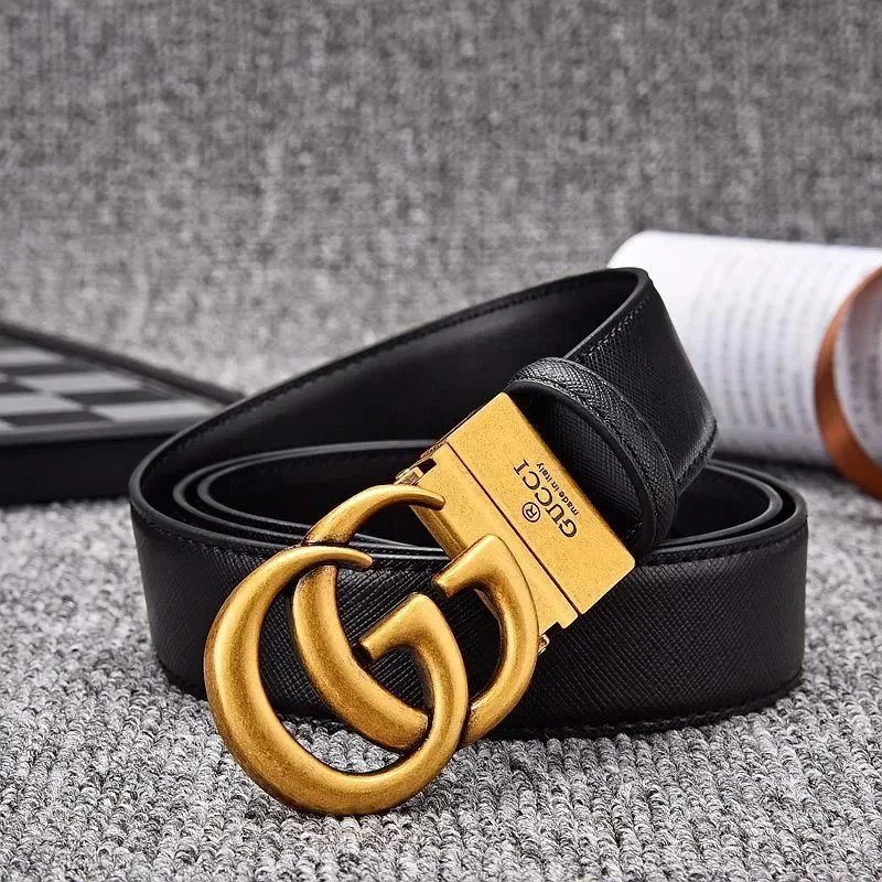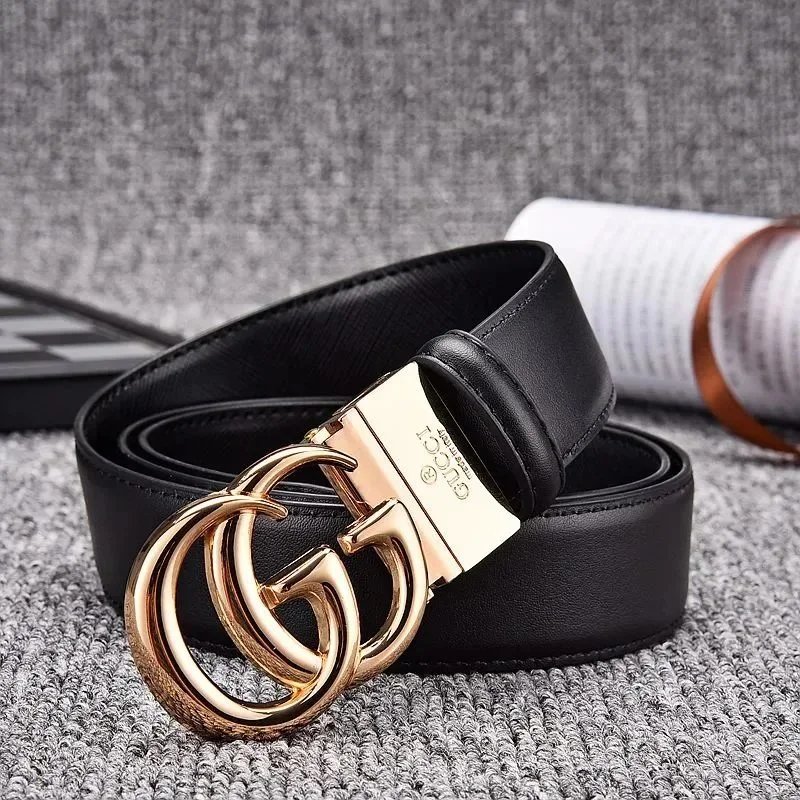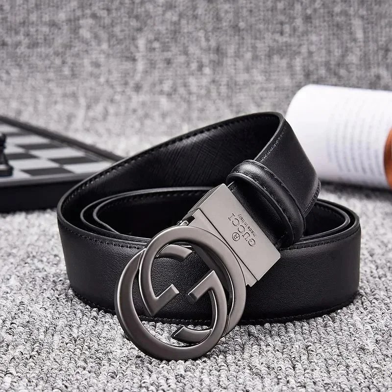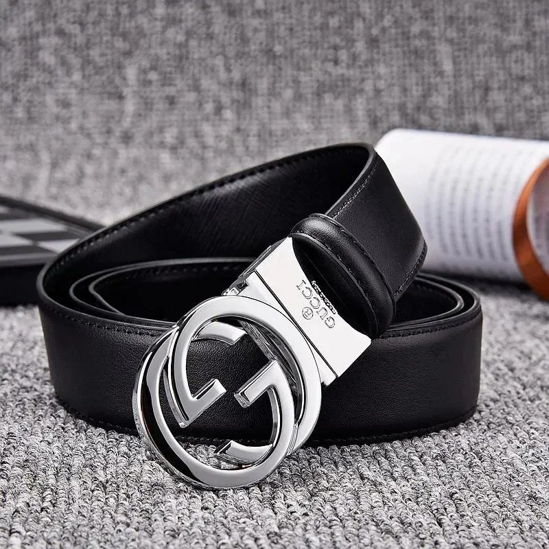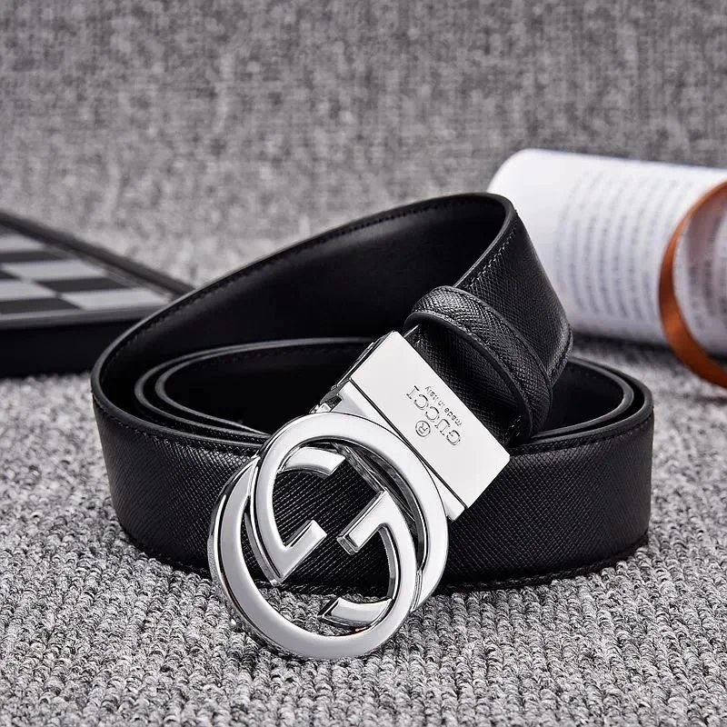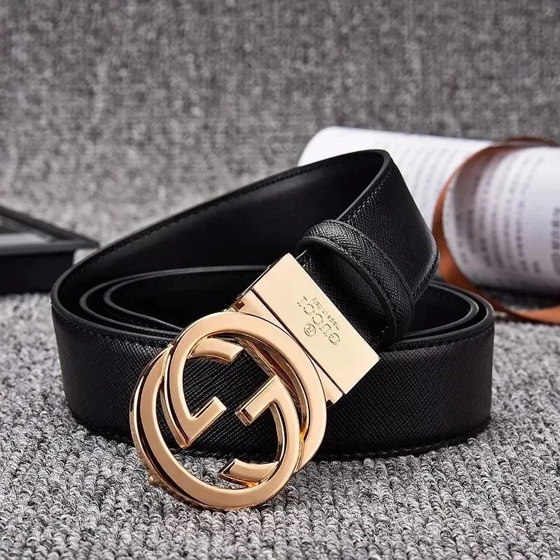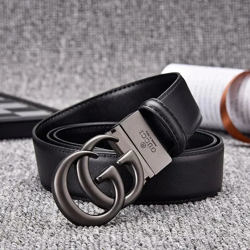 Elegant black Gucci belt featuring the iconic double G logo buckle in matte finish. Crafted from premium leather with an adjustable mechanism for a perfect fit.