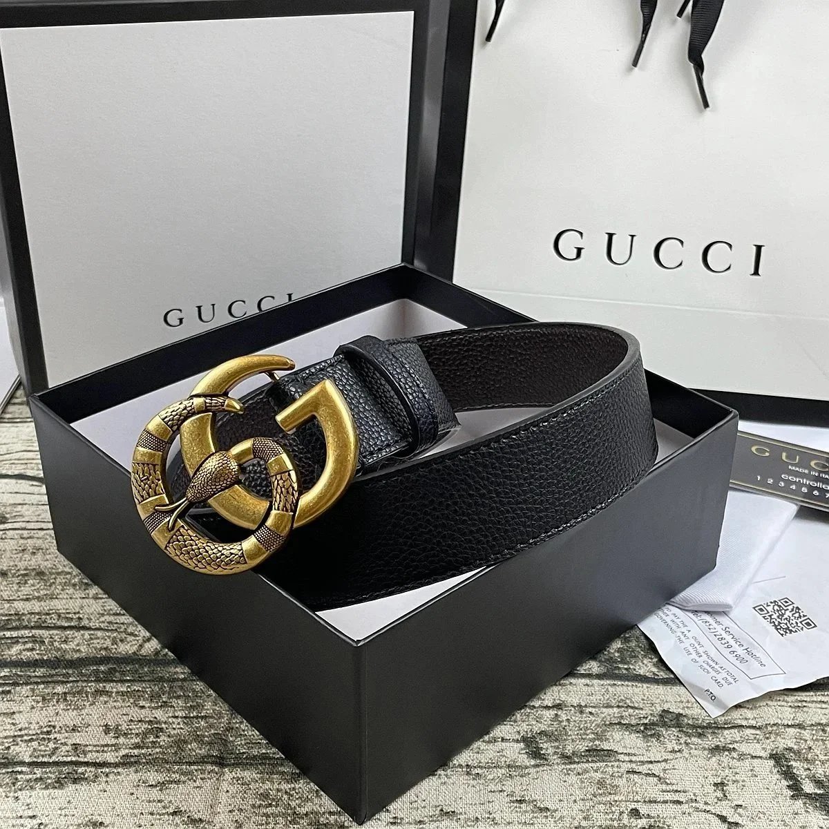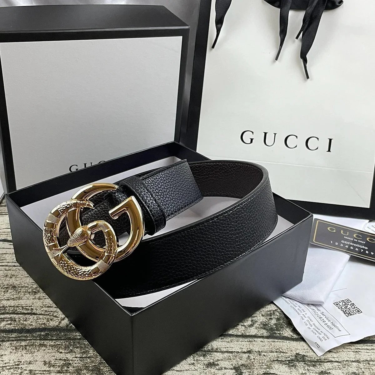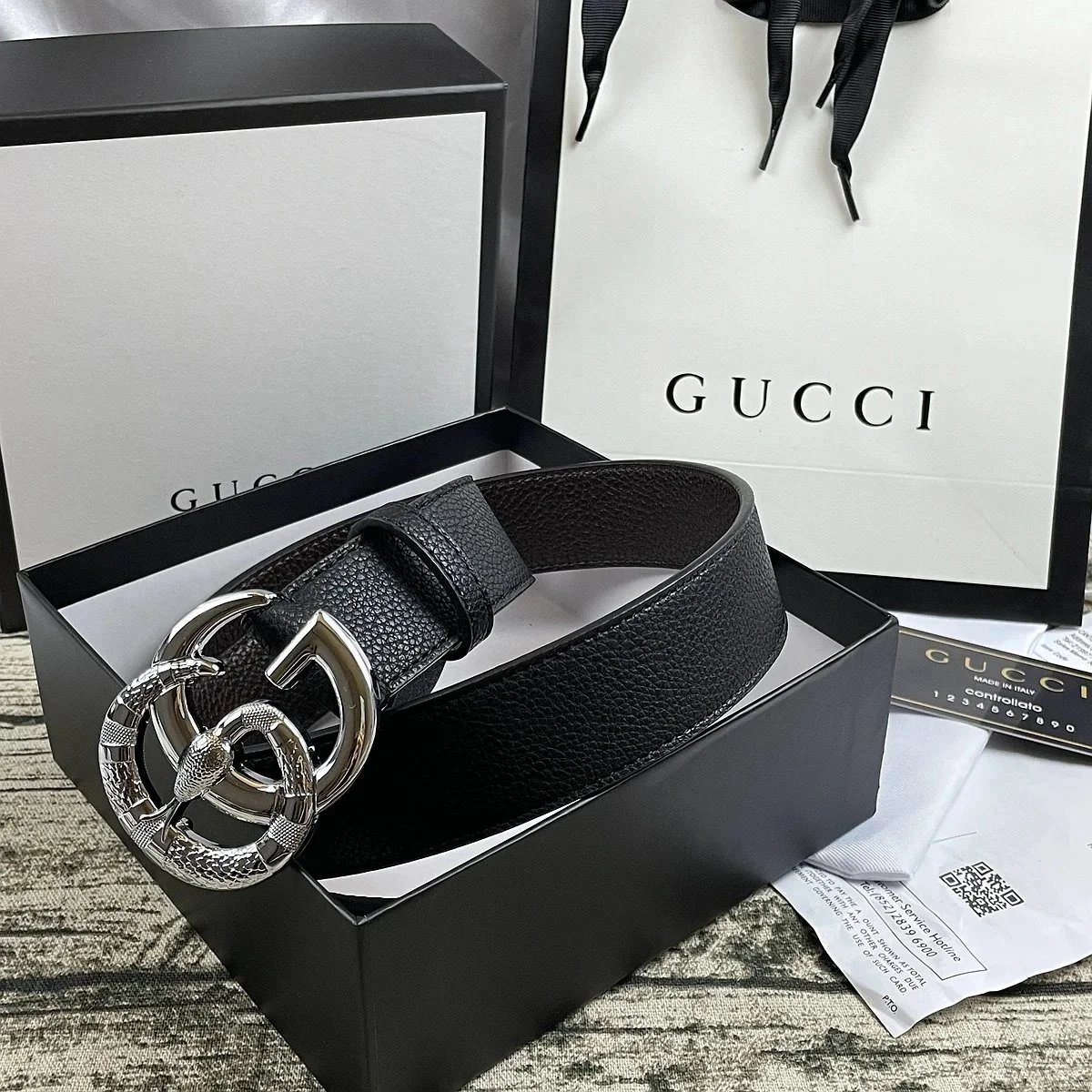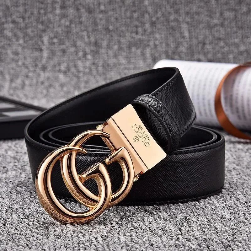 Elegant black Gucci belt featuring the iconic double G logo buckle in matte finish. Crafted from premium leather with an adjustable mechanism for a perfect fit.