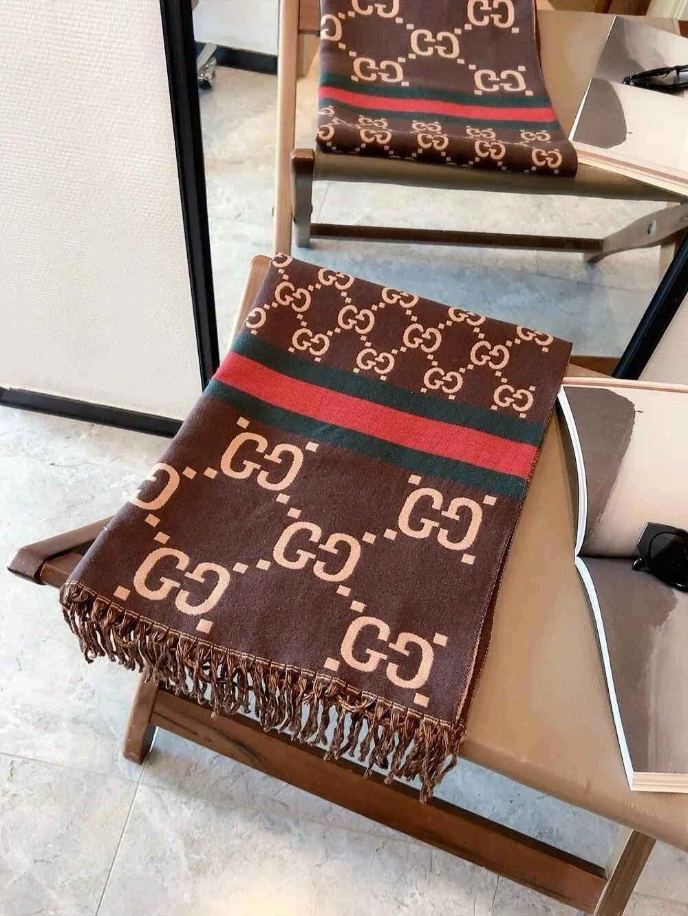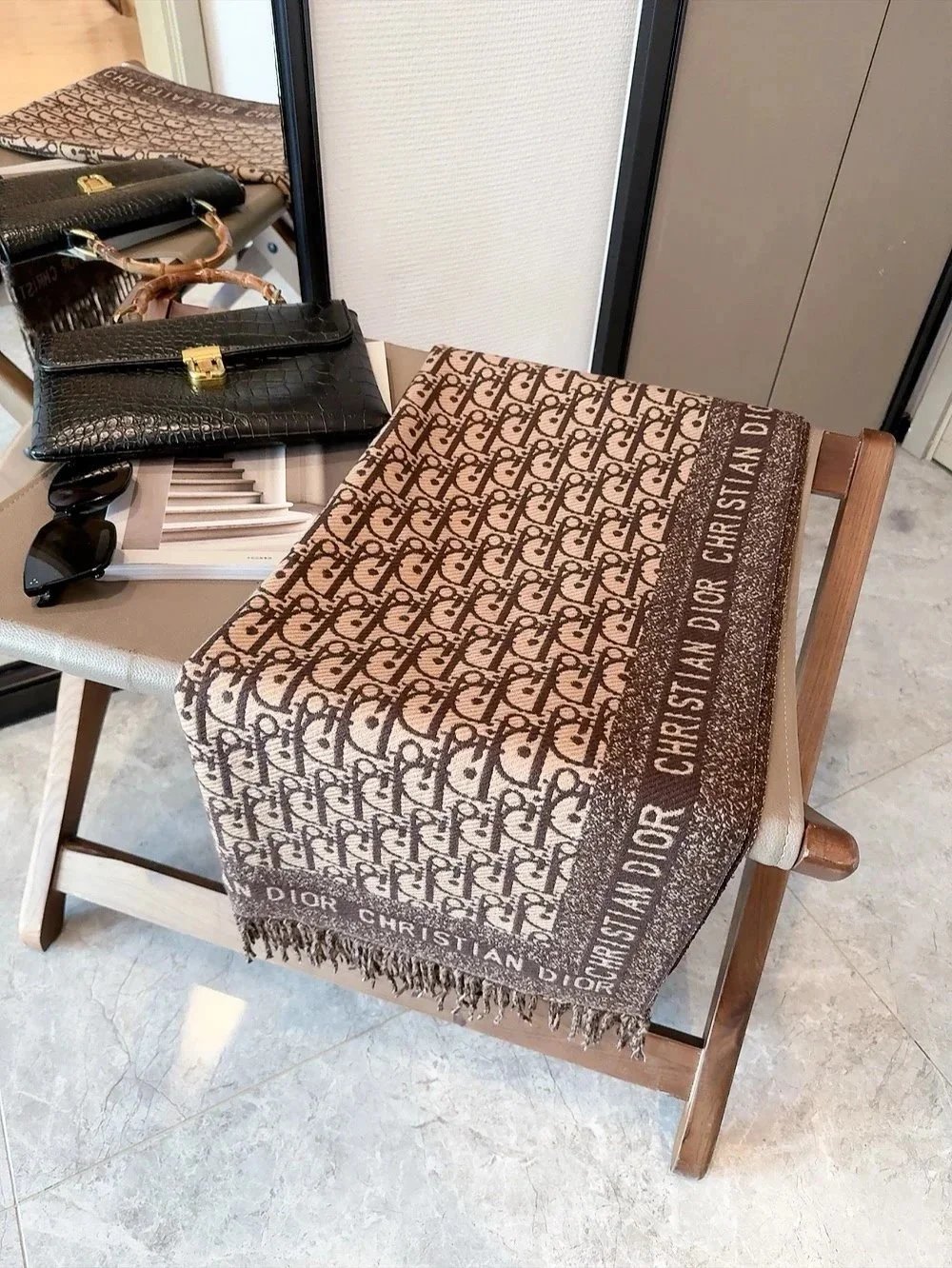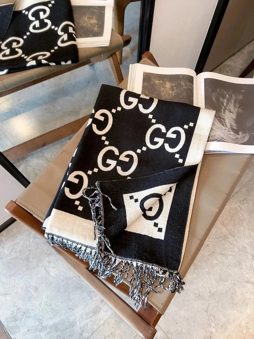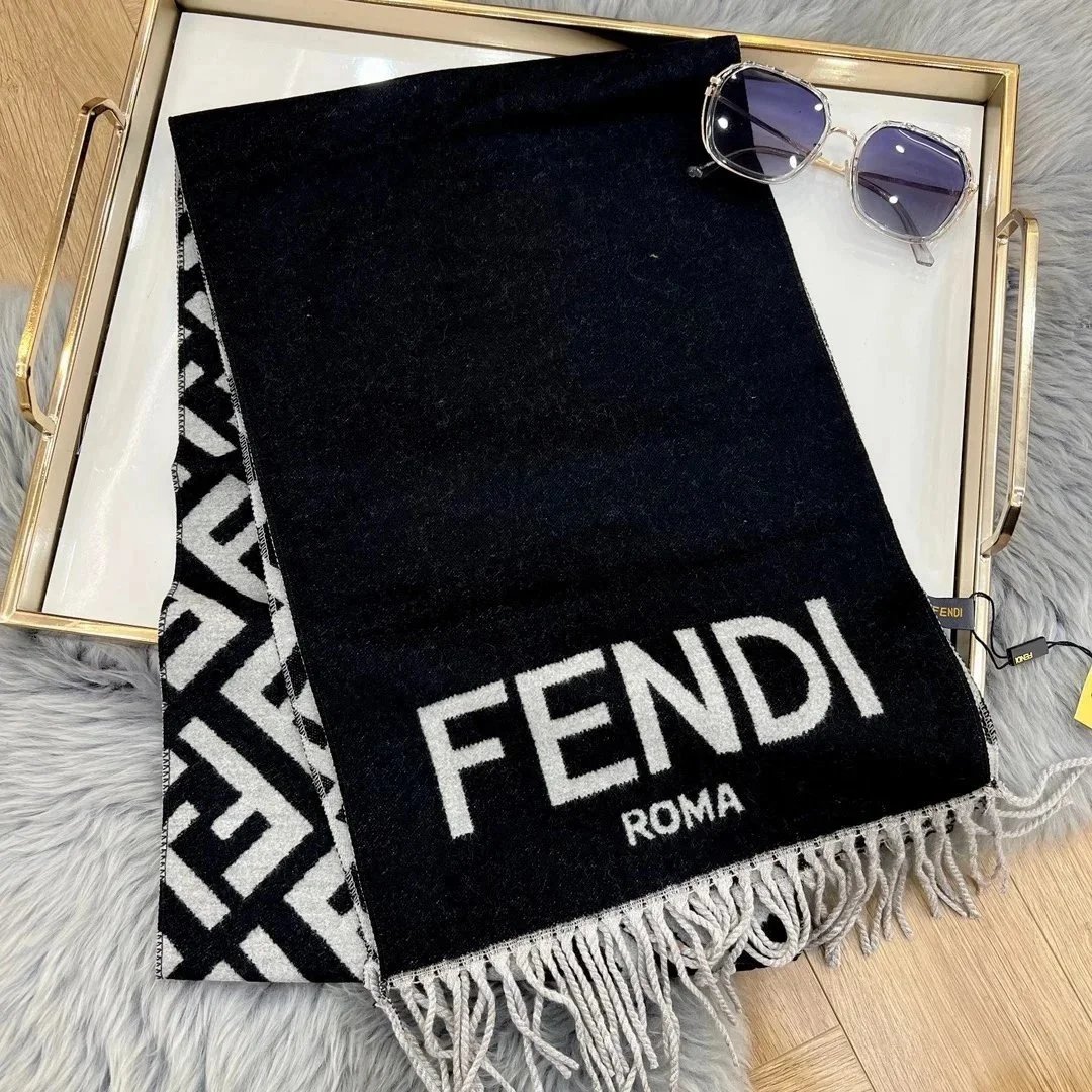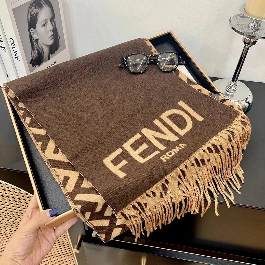Elevate your winter wardrobe with our collection of premium designer scarves featuring iconic logos and classic patterns from top luxury brands.