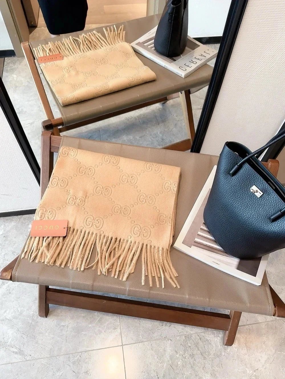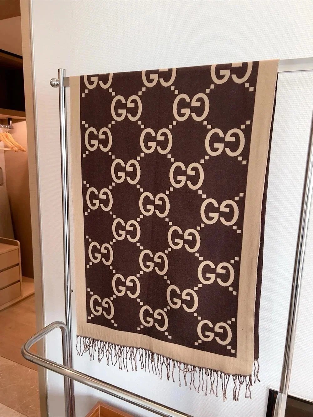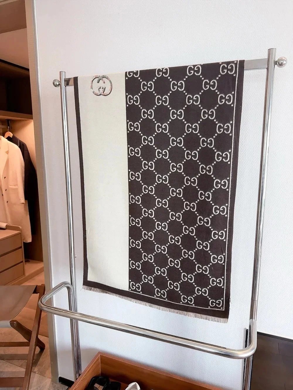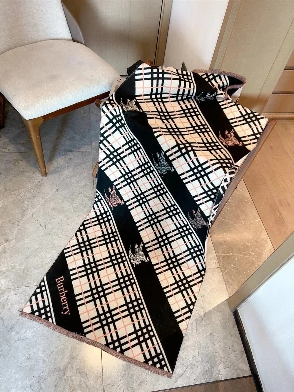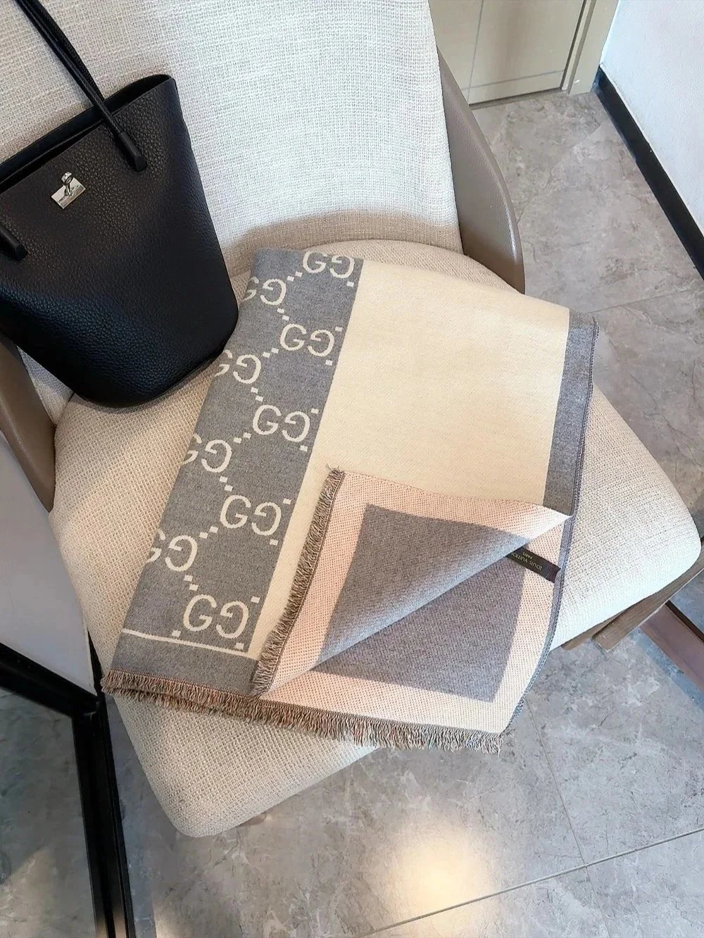 Elevate your winter wardrobe with our collection of premium designer scarves featuring iconic logos and classic patterns from top luxury brands.
