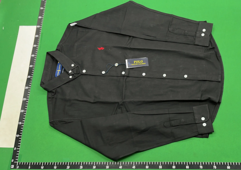 A neatly stacked collection of men’s button-up shirts in multiple colors with visible polo-style embroidery. Ideal for retail or online catalog display.